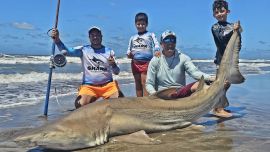 Cazones y bacotas, un combo tiburonero en el Faro Querandi