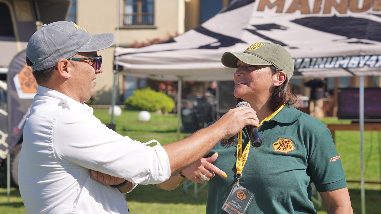 Verónica Romaña, directora del 4x4 Off Road Fest, entrevistada en vivo por Jota Leonetti, conductor del evento.