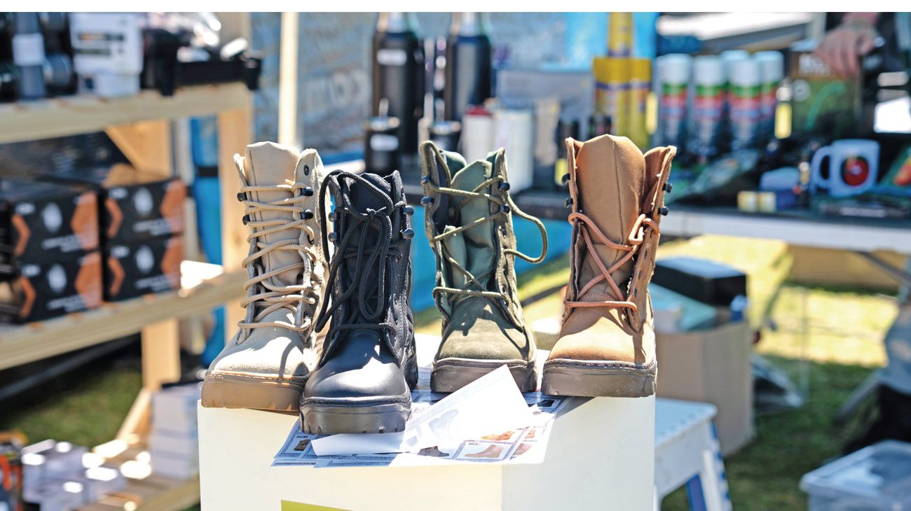 QLQ Táctico, uno de los fabricantes de borceguíes más importantes de la Argentina, estuvo presente con curiosos modelos, como el de suela antiespinas.