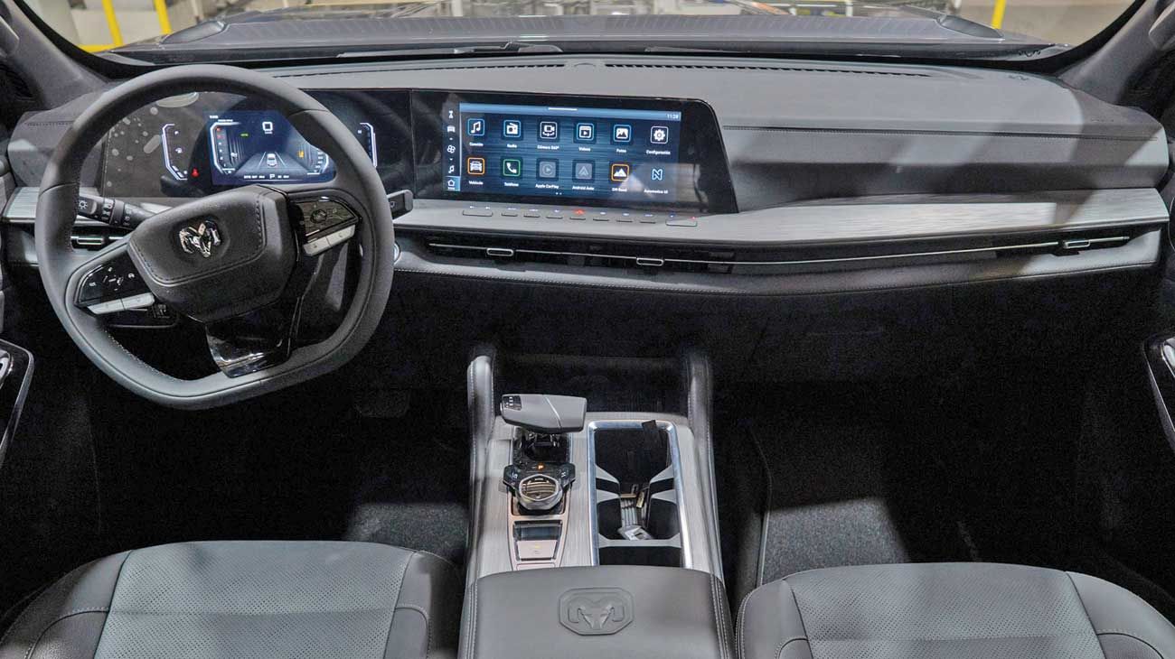 En materia de conectividad y comodidad, el interior combina instrumental digital de 7 pulgadas, pantalla central multimedia de 12,3 pulgadas, mandos ergonómicos, materiales de acabado superior y equipamiento de seguridad con seis airbags y cámara de visión multidireccional. En este sentido, la Dakota rompe esquemas para su categoría, ya que posee, además, un selector de marchas por palanca, un mando giratorio para seleccionar tracción, materiales de apariencia premium y un ambiente más cercano a un SUV grande que a una camioneta de trabajo. Los asientos eléctricos aparecen en su versión tope, así como las asistencias electrónicas de conducción.