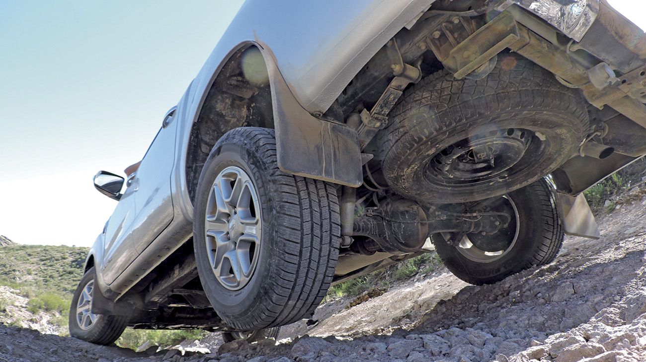 Otro recurso cuando una rueda gira sin traccionar (patina o queda en el aire) es utilizar la técnica de pie izquierdo, que simula un LSD. ¿Cómo funciona? En 4L, con el pie derecho damos un poco de acelerador, manteniendo un régimen bajo y constante (1.000–1.200 RPM), mientras que con el pie izquierdo presionamos el freno de manera suave y progresiva. Esa resistencia hace que el diferencial crea que ambas ruedas encuentran oposición y empieza a mandar parte del torque a la que está apoyada en el piso. Resultado: el vehículo con una rueda en el aire avanza despacio, sin necesidad de bloqueo mecánico, pero si presionamos demasiado el freno, el motor se detendrá.