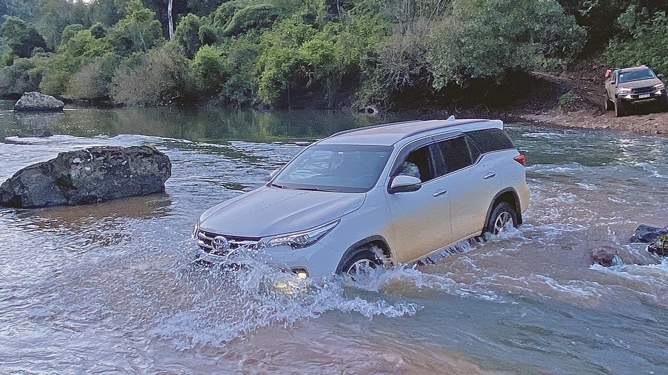 - Frente a vadeos, la reductora da control. Para no fracasar hay que entrar parejo, y avanzar en una sola marcha sin tocar el embrague. Sin duda, el fondo definirá la tracción (piedra, canto rodado o barro). Si patina, el bloqueo sólo se deberá conectar si el piso se encuentra firme.