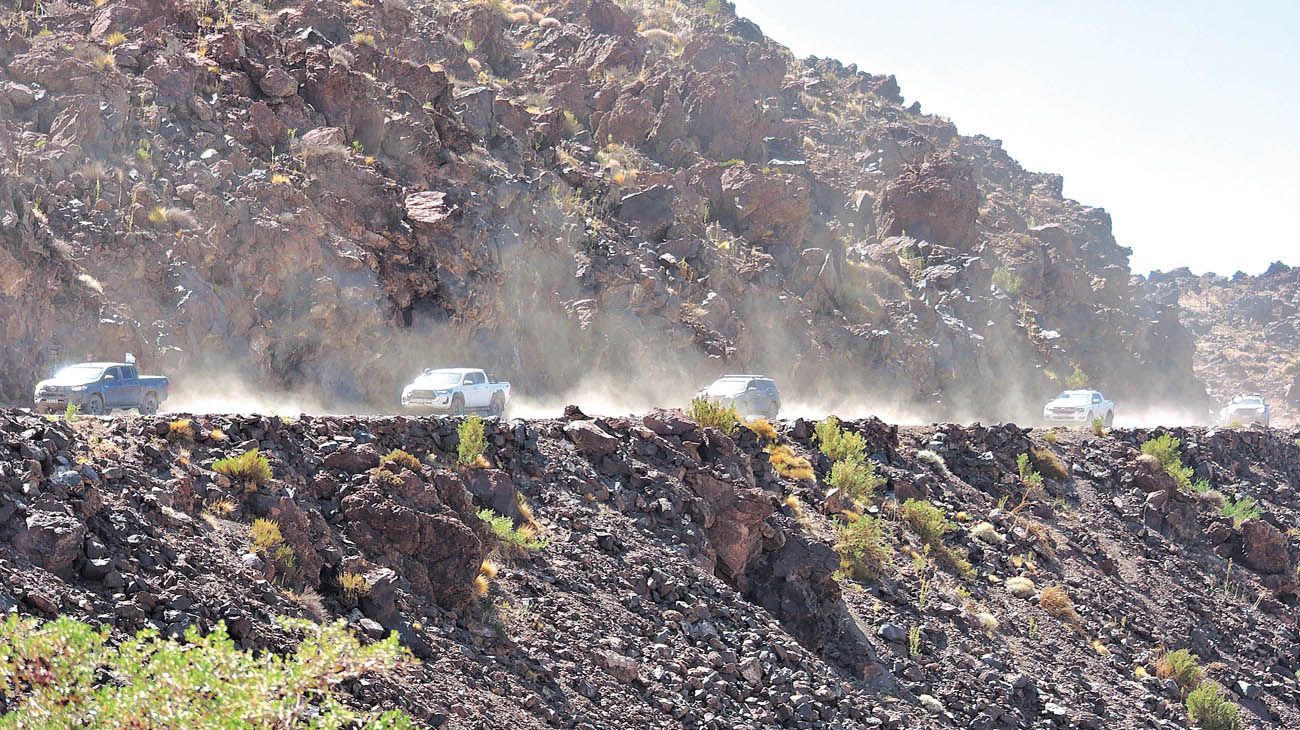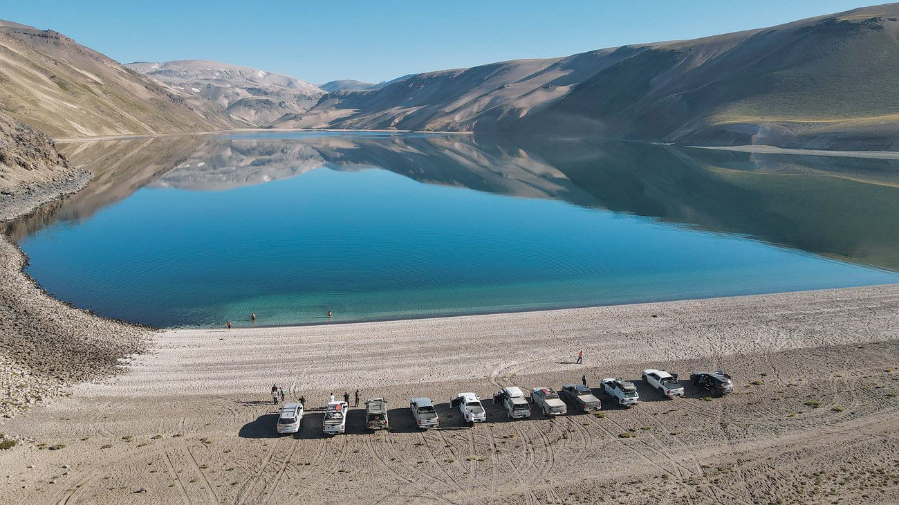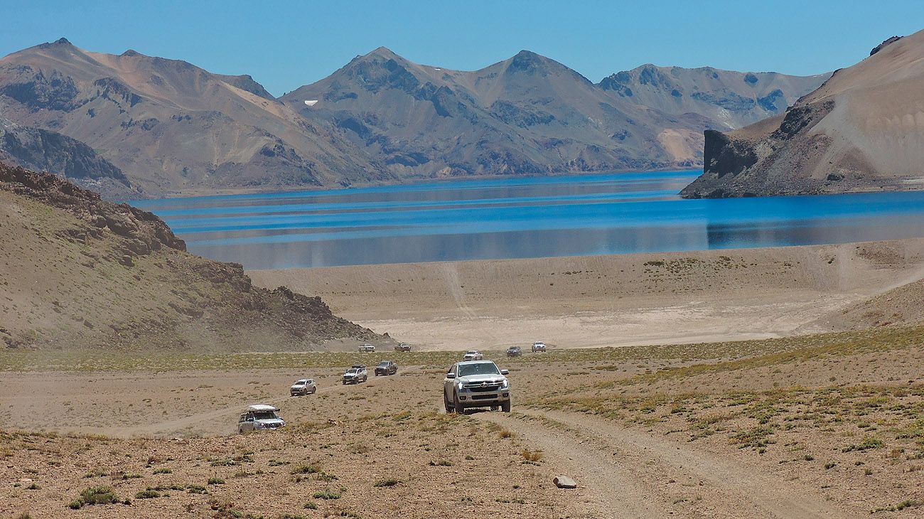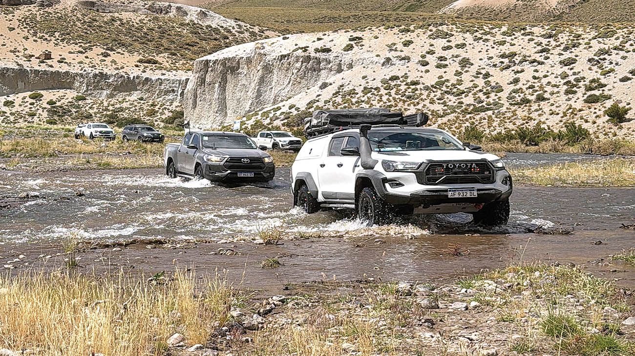 “Realizar esta travesía demandó días y noches de planificación –explica Verónica Romaña, directora de Mainumby4x4–. Y muchos recorridos de relevamiento para obtener el track definitivo. La idea es llegar a las lagunas La Negra, La Fea y Cari-Launa, pero (siempre hay uno)… el terreno no negocia: no hay huella, los arenales castigan, no existe señalización y a veces hay que mover piedras para abrirse paso”. El torque demandado por las trepadas pone de manifiesto la exigencia de las reductoras. El río Barrancas obliga a vadear una y otra vez. Y así de la nada –tal vez como producto de alguna tormenta cordillerana desconocida– aparece la trampa: una pendiente muy delicada, brava por geometría y por características del suelo. En subida, trepar es imposible; en bajada, largarse roza lo suicida: la camioneta puede irse de cola y volcar.