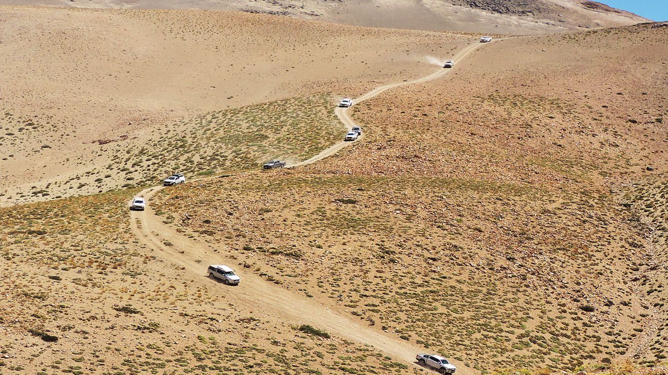 Regresamos 200 m y encaramos por una ladera desprovista de toda certeza. El sentido común y la razón la aprueban: la inclinación cierra, no hay grandes piedras a la vista. Reencontramos la senda que nos conduce al hito fronterizo y a la trepada que nos espera. Las instrucciones de Romaña son precisas: “Segunda o tercera de baja, revoluciones constantes y a no aflojar. Cada uno conoce su vehículo para elegir la marcha correspondiente. Si se quedan, bajan una velocidad y vuelven a encarar. Si las ruedas patinan, conectan el bloqueo trasero, pero en principio no es necesario. Los que tienen caja automática la llevan en secuencial”.