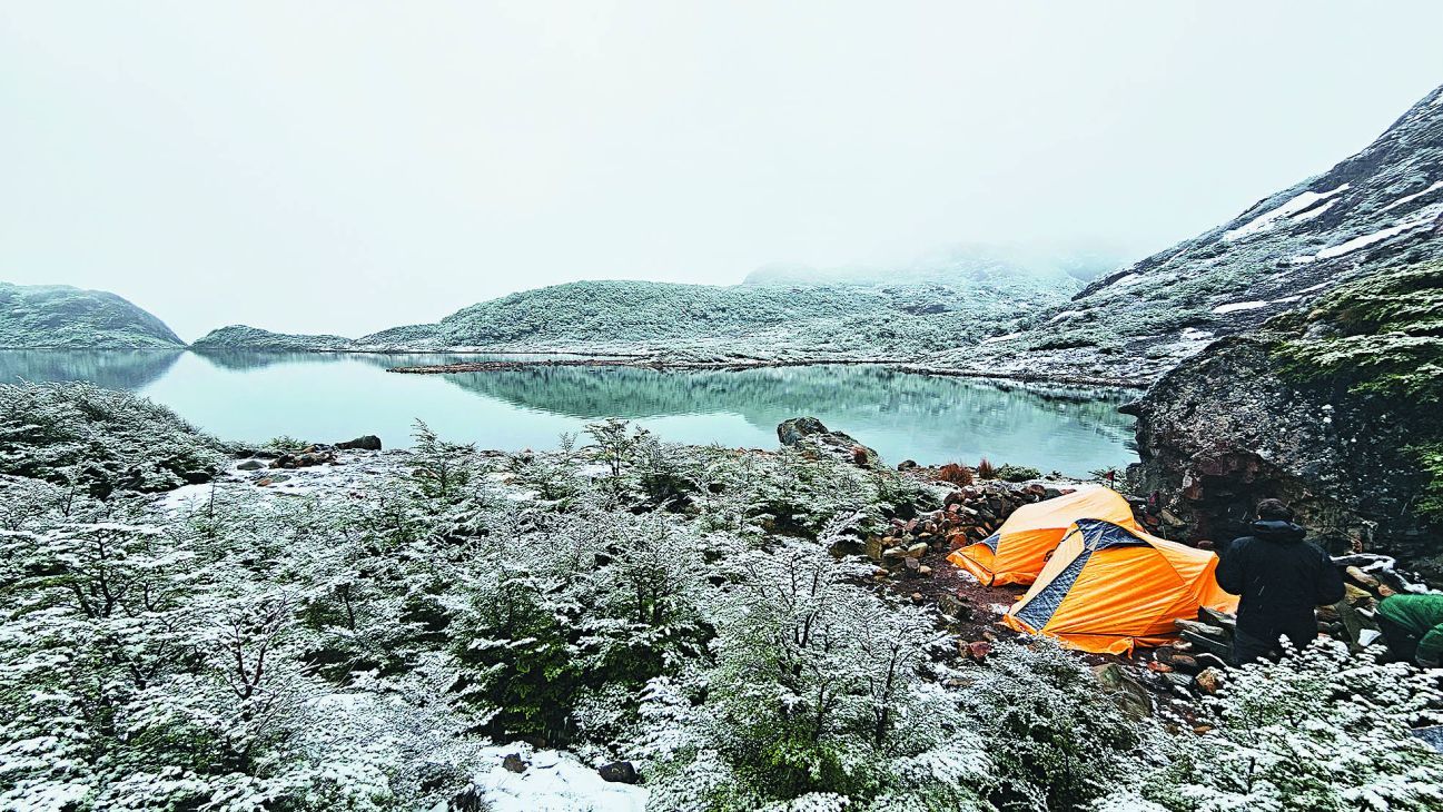 Efectivamente, éste es un trekk bien salvaje y no hay Gore-Tex que aguante: todo se moja, por lo que no es recomendable tener el teléfono a mano. Aquí, mientras armamos la carpa y sacamos otra vez los sobres con verduras deshidratadas para alimentarnos, comprendemos algo tristes, y algo alegres, que estamos iniciando el regreso, en una suerte de herradura que nos devolverá a Puerto Williams.
