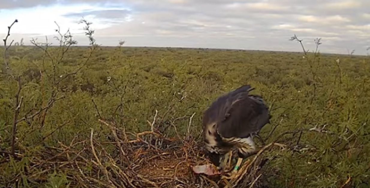 Un equipo de investigadores del CONICET y del Centro para el Estudio y Conservación de las Aves Rapaces en Argentina (CECARA).está trasmitiendo en vivo y por primera vez en la historia un nido de águila coronada (Buteogallus coronatus), en La Pampa. De esta manera, este inédito streaming permite seguir, minuto a minuto, la vida de un pichón que crece bajo el cuidado de sus padres en lo alto de un caldén, en medio del paisaje del caldenal pampeano.