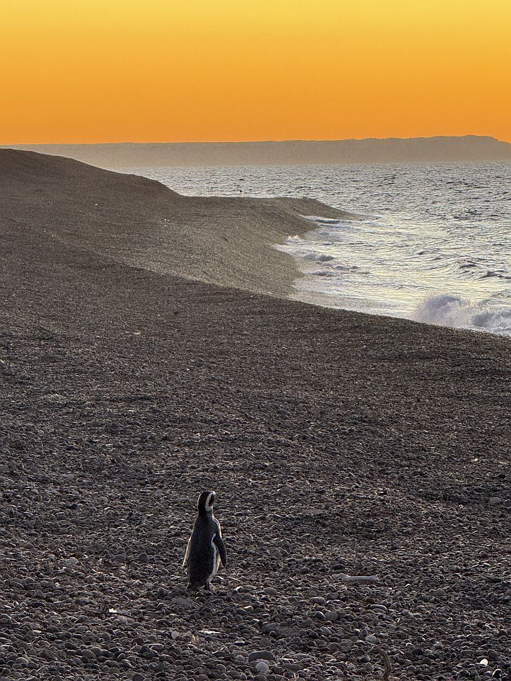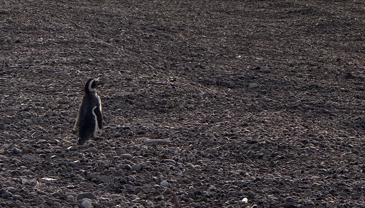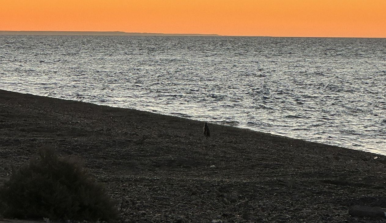 Caía la tarde en Punta Ninfas. El sol ya cruzaba el horizonte, mientras la luna, casi llena, ascendía por encima del acantilado. La caminata entre nidos vacíos había sido, hasta ese instante, una pequeña desilusión: la espera del primer pingüino parecía estirarse unos días más. Hoy no sería “el gran día”. Pero al volver sobre los pasos, allí estaba: solo, a pocos metros del mar apareció el primer pingüino de Magallanes de la temporada a esta zona de la costa de la provincia del Chubut.