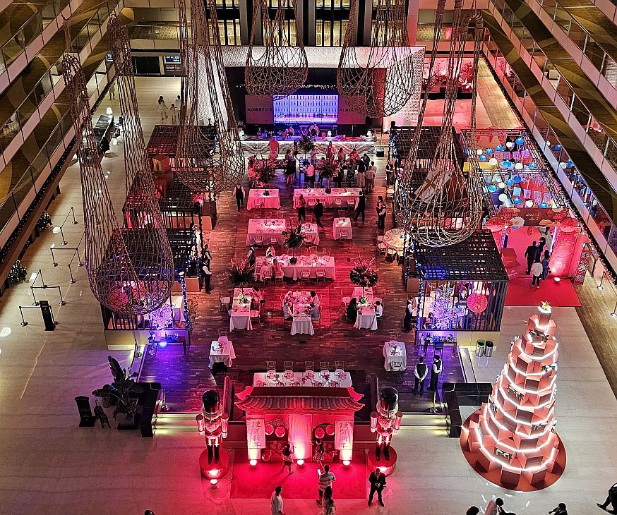 Christmas Eve Party en el Salón Los Girasoles, con capacidad para 400 personas, incluye buffet amplio con clásicos navideños, estación de carnes, pescados y platos fríos, mesa dulce temática, vinos seleccionados libres, show musical con bailarines y cantantes, DJ, Papá Noel entregando regalos, stand de maquillaje glitter y sorpresas para los más chicos. El valor es de $ 320.000 para adultos y $ 170.000 para menores.