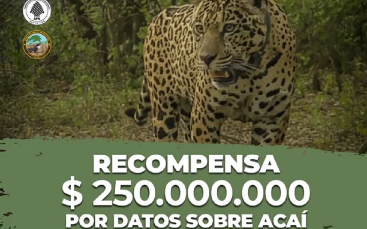 La Administración de Parques Nacionales (APN) dio a conocer a través de sus redes sociales el ofrecimiento de una recompensa nada menos que de $250 millones a quienes encuentren o brinden información valiosa de Acaí, la yaguareté hembra de dos años y ocho meses de vida que desapareció misteriosamente hace más de un mes en el Parque Nacional El Impenetrable, Chaco, encendiendo alarmas en todo el país por tratarse de un ejemplar clave para la recuperación de esta especie que se encuentra en serio peligro de extinción, según la Unión Internacional para la Conservación de la Naturaleza (UICN)..
