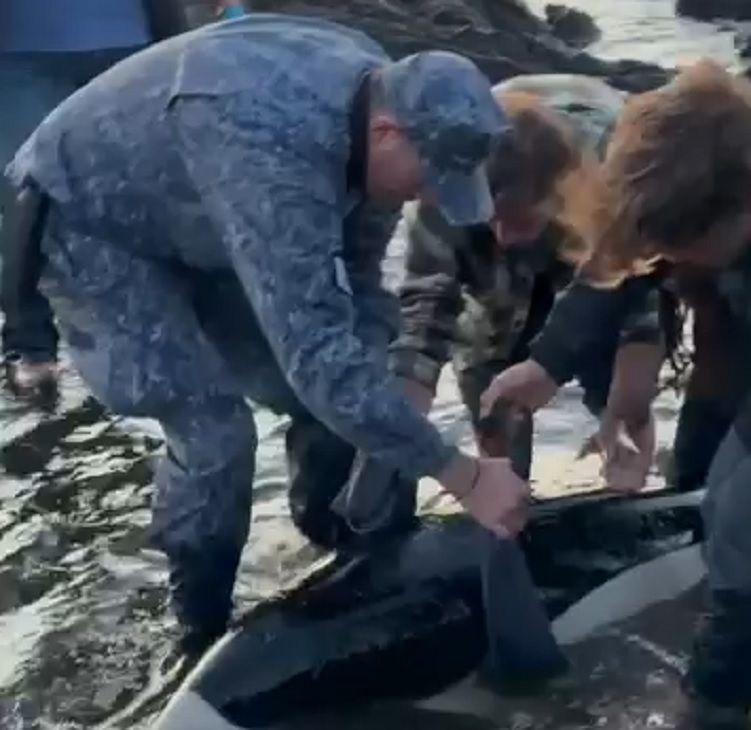 Tras difundirse las imágenes, se identificó la especie por su particular patrón de colores blanco y negro, en tanto que el extraño cetáceo fue dado y vuelta y acercado a la orilla por voluntarios y personal de Prefectura. “Estaba varado entre las rocas. De hecho, cuando llegó Victoria Bonnet, que fue la primera del equipo de BallenasUy en el sitio, se encontró con que el animal estaba vientre arriba, lo cual era un problema importante, porque necesita tener el espiráculo libre para poder respirar”, relató a La Diaria, Álvaro Pérez Tort, fotógrafo de fauna.
