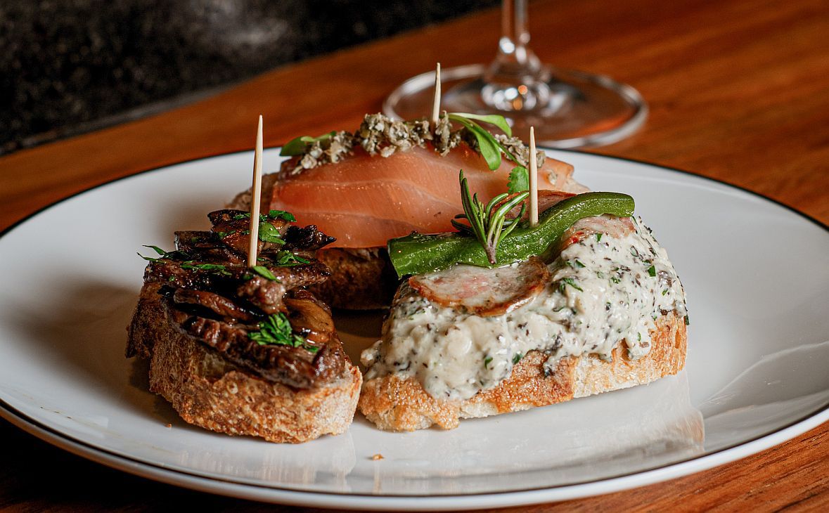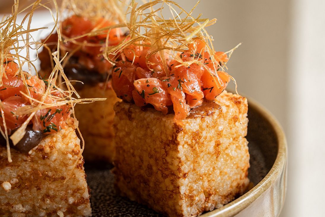 También hay otras propuestas como el Socarrat pil pil con patí curado del Alto Río Paraná y espuma de alubias escabechadas, de Alo’s en Zona Norte; la Ensaladilla rusa de mejillones escabechados con huevo brevemente cocido y papas pajas, de Wineslavid en Córdoba; la Mojama de atún rojo con oliva y lima, de Sarasanegro en Mar del Plata; o el Carpaccio de pesca del día con brisée de parmesano, vinagreta de oliva, alcaparras y cebollitas en conserva, de Gibraltar en Rosario. El circuito también incluye opciones más contemporáneas, como los Tomates confitados con alga kombu, sopa de lechuga y muña muña, puré de cebollas, almendras, kale, menta y aceite picante, de Auténtico en Mendoza.