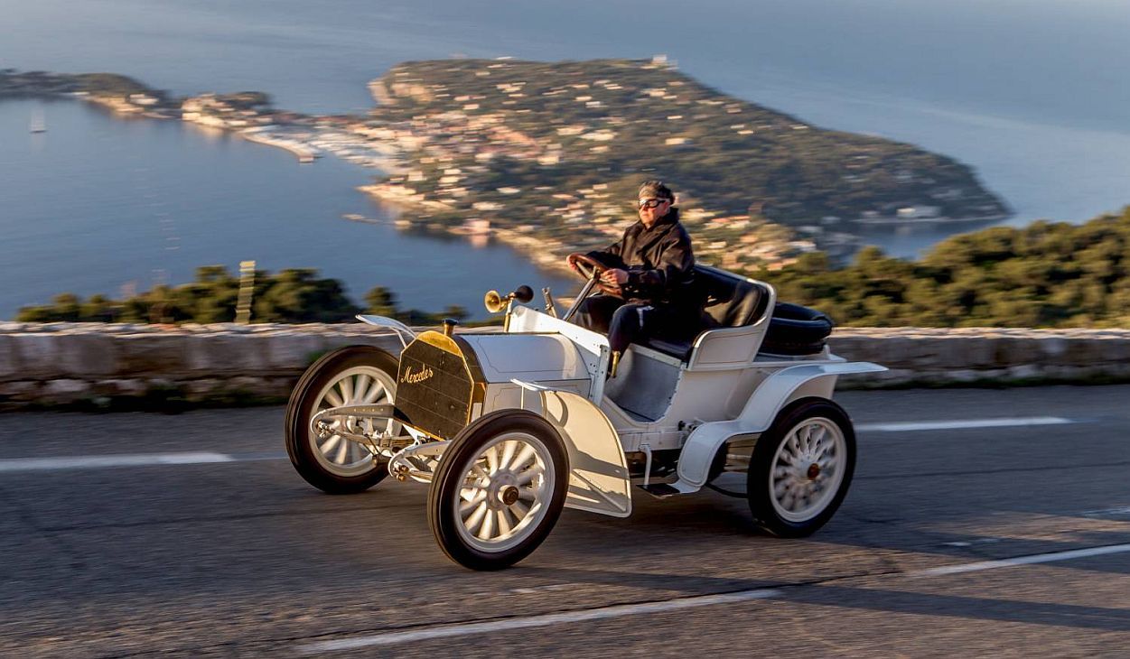 Además, el primer Mercedes de 35 CV fue probado varias semanas mediante rigurosos tests y una meticulosa puesta a punto. Tras esta fase de perfeccionamiento, conocida como “rodaje”, el primer Mercedes de la historia se envió a Emil Jellinek en Niza el 22 de diciembre de 1900. Con un éxito rotundo, el socio comercial de DMG inscribió este nuevo tipo de automóvil en la Semana de Carreras de Niza, celebrada del 25 al 29 de marzo de 1901. Dominó las competencias, alzándose con la victoria en la carrera Niza-Salon-Niza de 392 kilómetros y en la subida a La Turbie de Niza, entre otras.