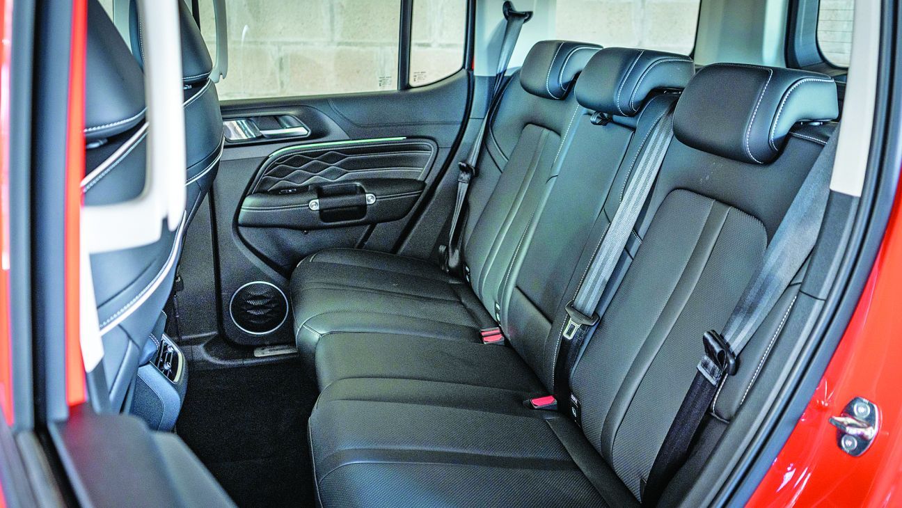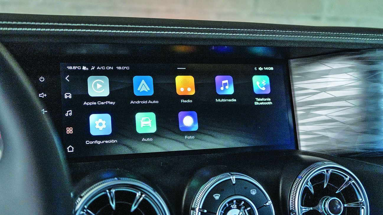 Un aspecto a destacar es que el panel de instrumentos está dominado por dos pantallas digitales de 12,3 pulgadas unidas en un solo “cluster”, cuyo diseño está perfectamente adaptado sin sobre salir por encima del torpedo. La serigrafía es muy agradable y la información de ambos display, muy completa, y además permite espejar dispositivos Android Auto y Apple Car Play de manera inalámbrica. La selectora de cambios es tipo joystick de avión, y la consola central reúne otros comandos para configurar diversos parámetros del vehículo, entre ellos el sistema de tracción, los modos de manejo y freno de estacionamiento eléctrico. El espacio trasero es muy generoso y los pasajeros de este sector contarán con doble puerto USB y un enorme techo panorámico, entre otros amenities.