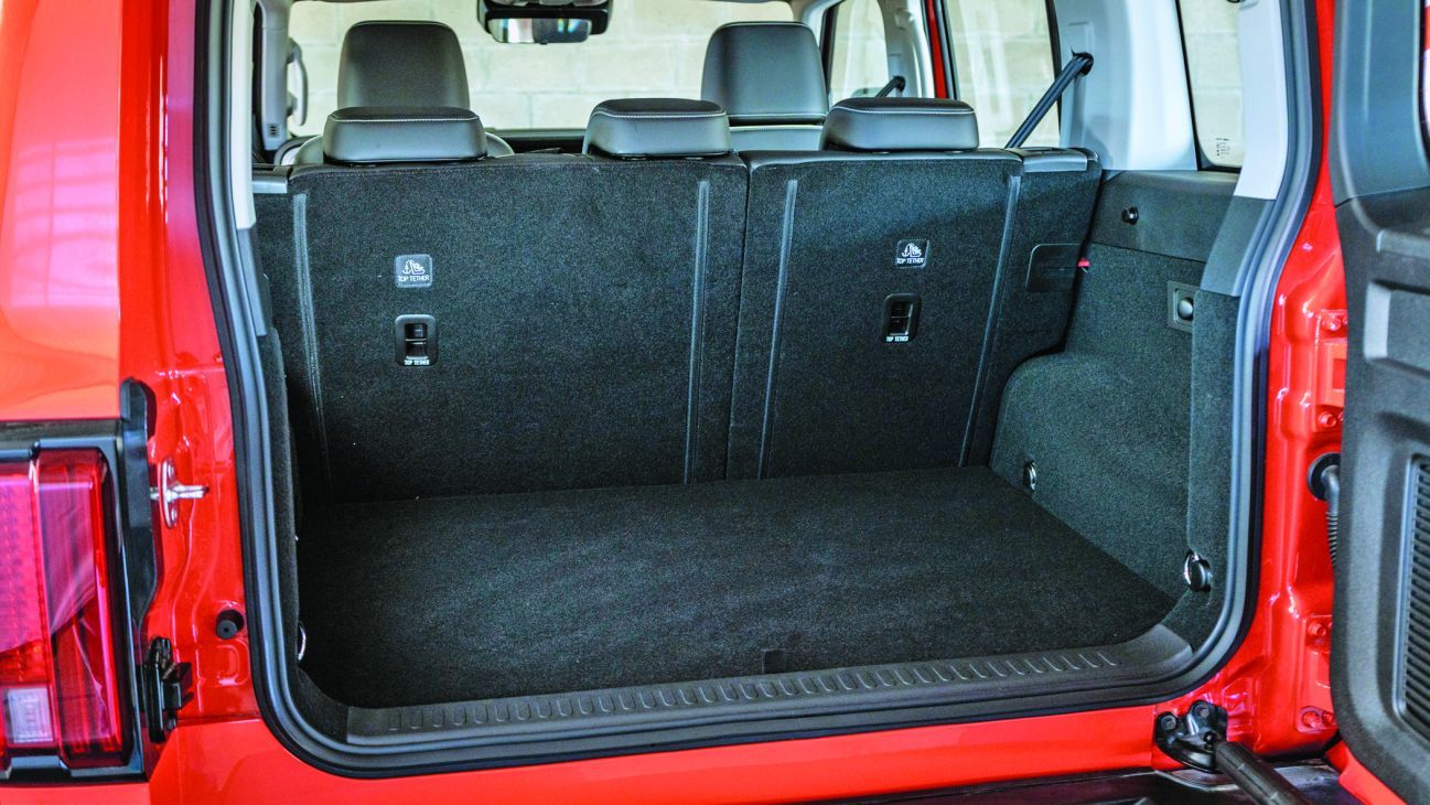 Por supuesto luce marcados pasarruedas, calza llantas de 17” en medida 265/65 y sobre el portón trasero monta la rueda de auxilio, un detalle típico de los vehículos de su estirpe. La capacidad de carga del baúl (de apertura lateral) es de 400 litros pero puede ampliarse a 1.635 litros abatiendo los asientos traseros, y dentro de este espacio ofrece un práctico toma de 220v.
