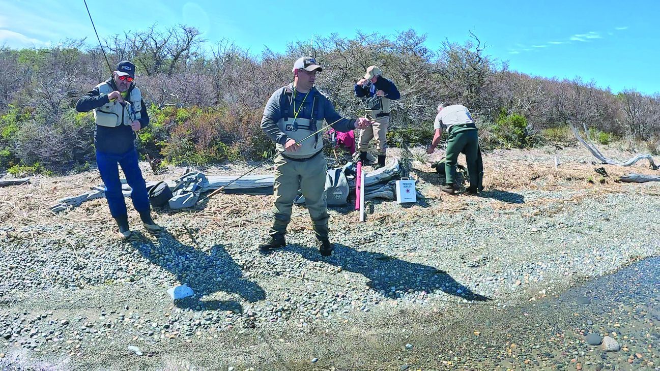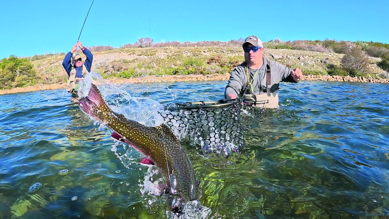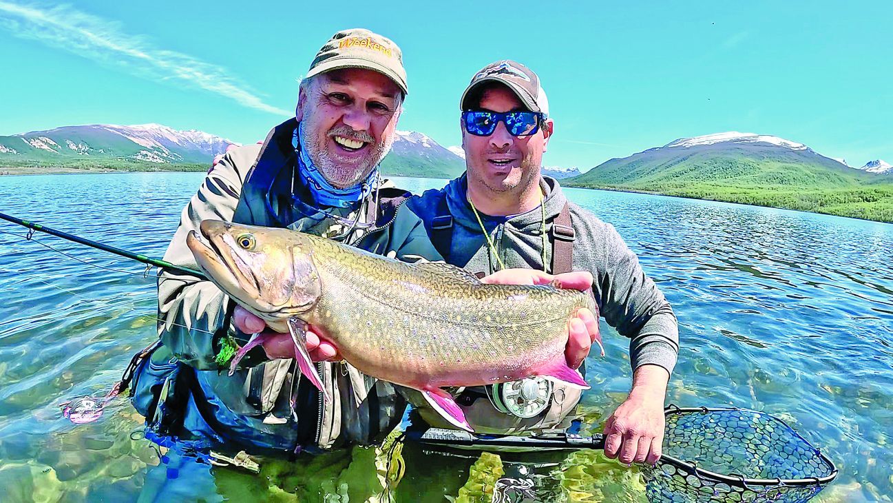 Precisamente, en el lago Engaño estábamos pescando -a unos 60 km hacia el sur de la localidad chubutense de Corcovado- con el apoyo de la Dirección de Pesca Continental con Pablo Buono a la cabeza y un equipo conformado por Nacho Tascón, Rudy Murúa, Martín Molina, Mariano Casanova y Luciano Herrera, quienes se encargaron de toda la logística para el grupo de periodistas que realizamos la cobertura de esta parte de la temporada. Y en lo que hace a la pesca estrictamente dicha, el guía Alejandro Taravello para asistirnos en esta incursión.
