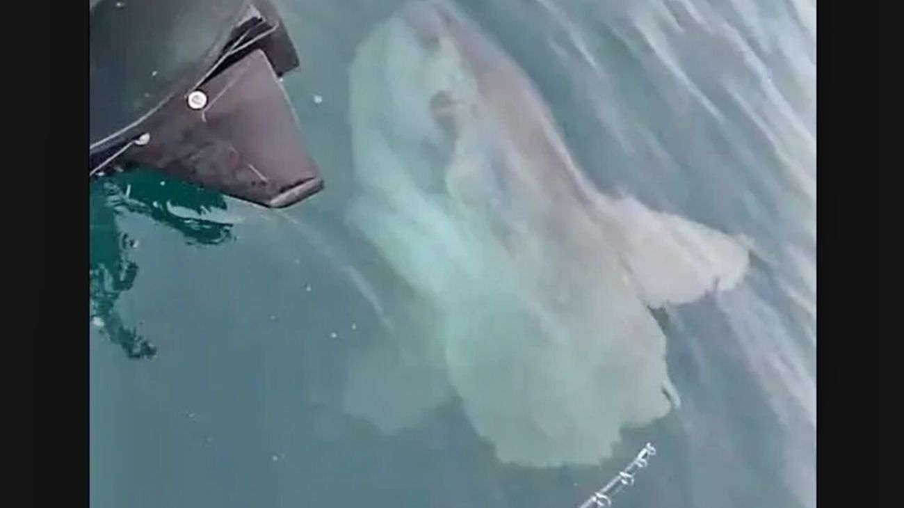 El hecho ocurrió hace pocos días, cuando la embarcación —que había zarpado desde la zona del Torreón— permanecía anclada en el tradicional Banco de Pescadores. Allí, el gigantesco ejemplar se acercó a la lancha y permaneció durante varios minutos nadando en superficie.