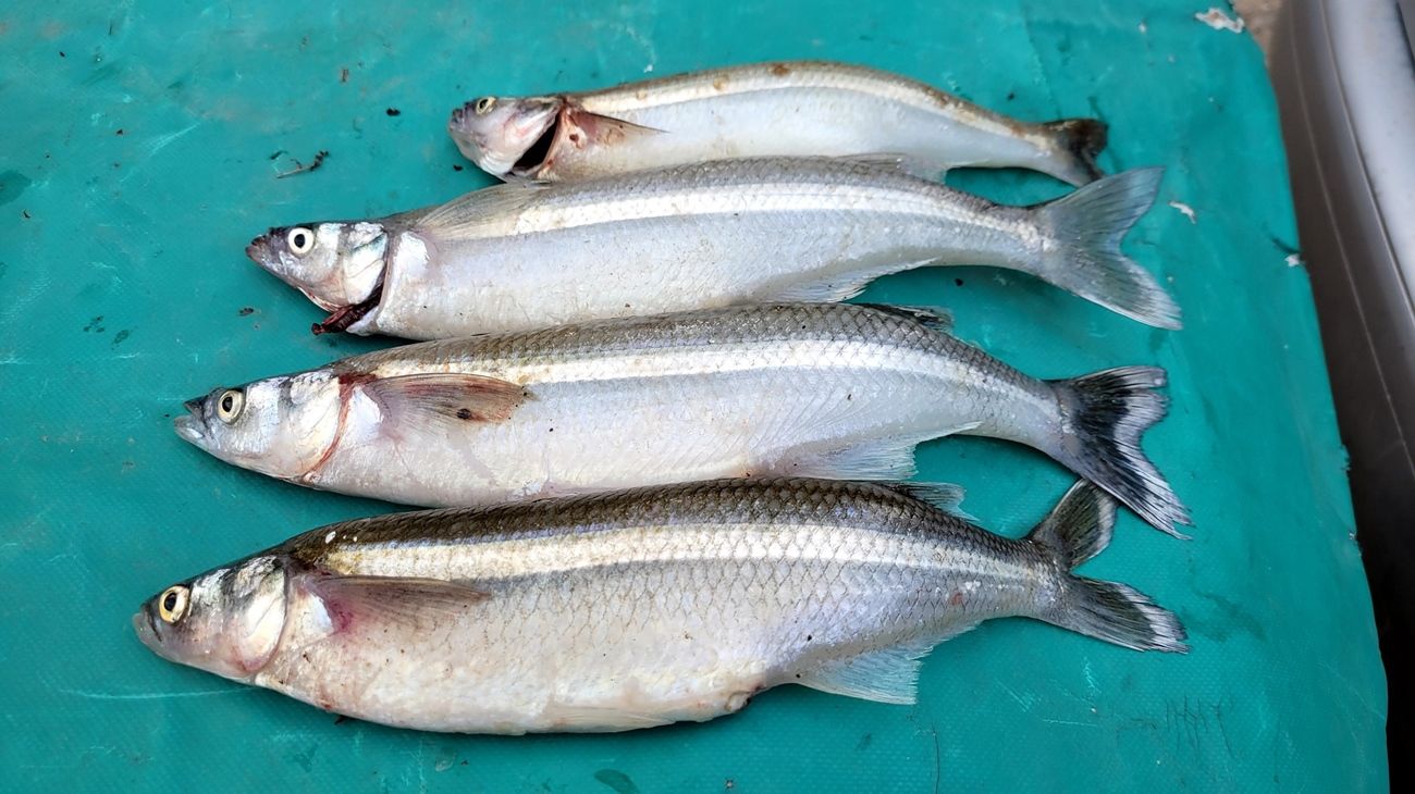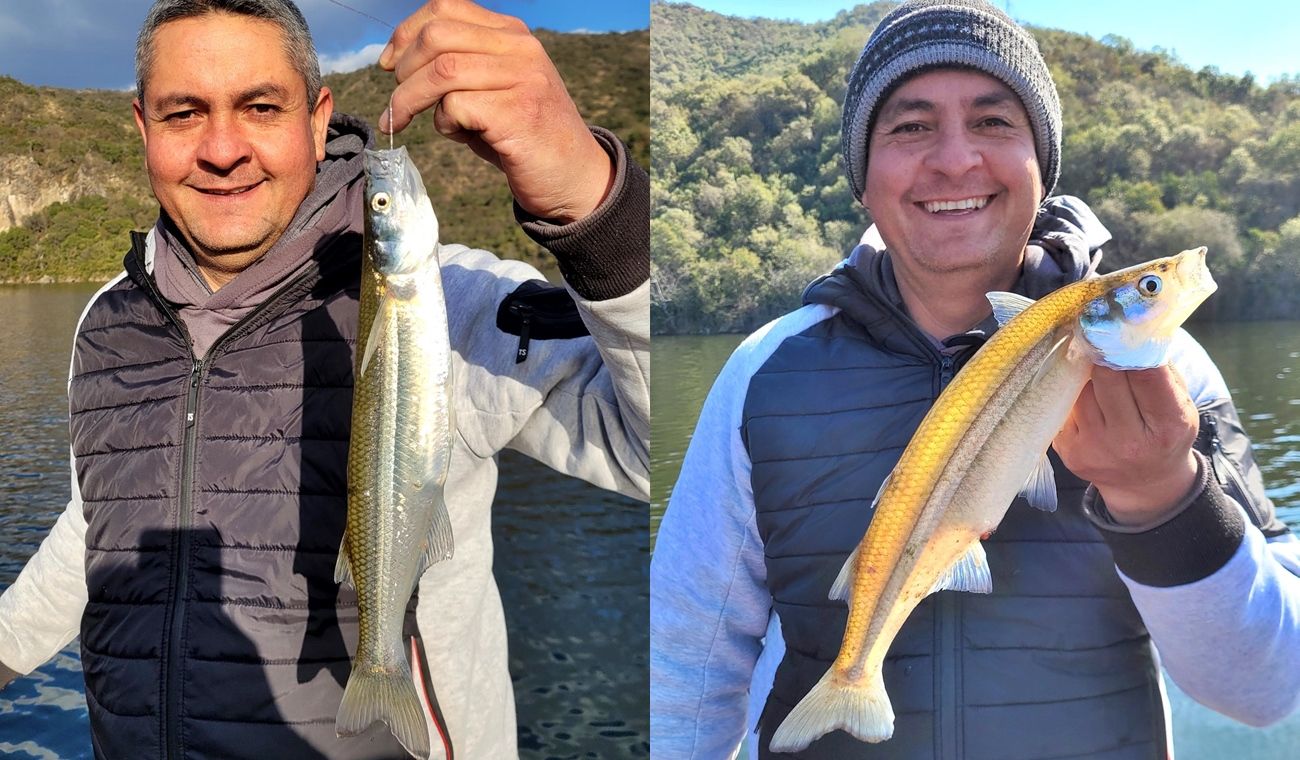 La salida se realizó el sábado 16, en una jornada fresca pero bastante agradable en un invierno que se ha hecho sentir. Bien temprano, ingresaron y se apostaron en las inmediaciones al paredón, a la derecha del muro. Como referencia para los pescadores, hay una casa enfrente sobre las márgenes del lago. La profundidad marcaba unos 15 m, y al agua fueron los aparejos, de flote con brazoladas de un metro rematadas con un anzuelo N° 1. Un puntero cargado y una boya del tipo cometa detrás. Los piques no fueron continuos, y tal como se esperaba, la cantidad no iba a ser lo más destacado, sino la calidad de los ejemplares que se prendían a los encarnes con mojarra viva principalmente, aunque los filetes de dientudo también daban buen resultado.
