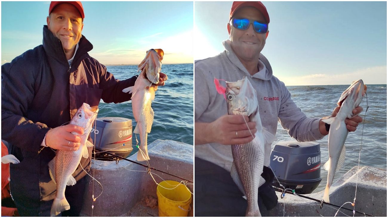 Nos contaba Dibbern que el sábado 1, los resultados fueron dispares. La pesca fue intermitente, con besugos y gatuzos predominando en los piques, aunque el lunes 3 volvió a aparecer la pescadilla en cantidad, con muy buena calidad. Además, abundancia de gatuzos y un mar que no permitió ir por los meros, un pez que está firme pero entra en su etapa final de la temporada.