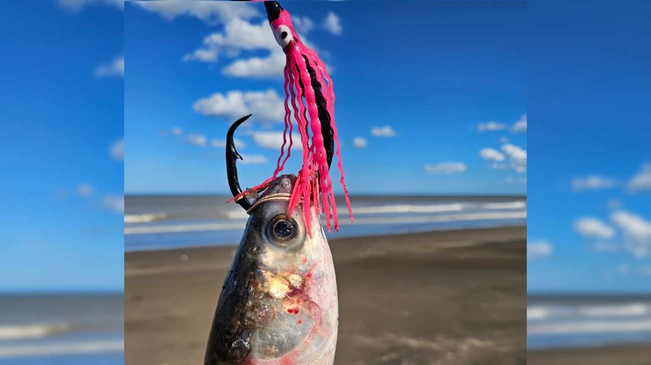 El equipo que usaron es el clásico pero efectivo: 1,50 metros de cable de acero, rematado con un anzuelo Tartuna 12/0 y un grampín con fusible, ese detalle de nylon fino que se corta al tener el pique, dejando la línea directa entre el pez y el pescador. A la línea le sumaron una boya esférica cercana al anzuelo, que mantiene la carnada suspendida, lejos del fondo y a salvo de los ataques de las especies menores. La carnada, infalible: media lisa mediana, atada firmemente con hilo de goma para que aguante el embate del oleaje, dejando la punta del anzuelo bien libre.