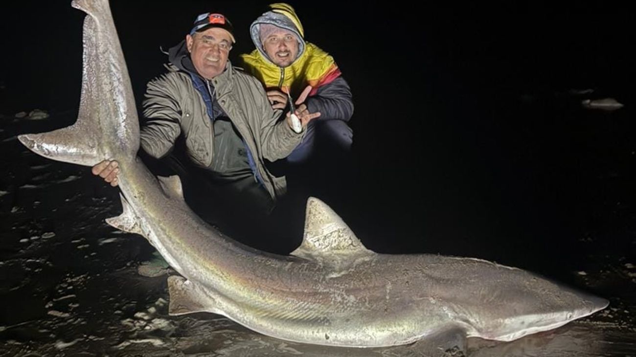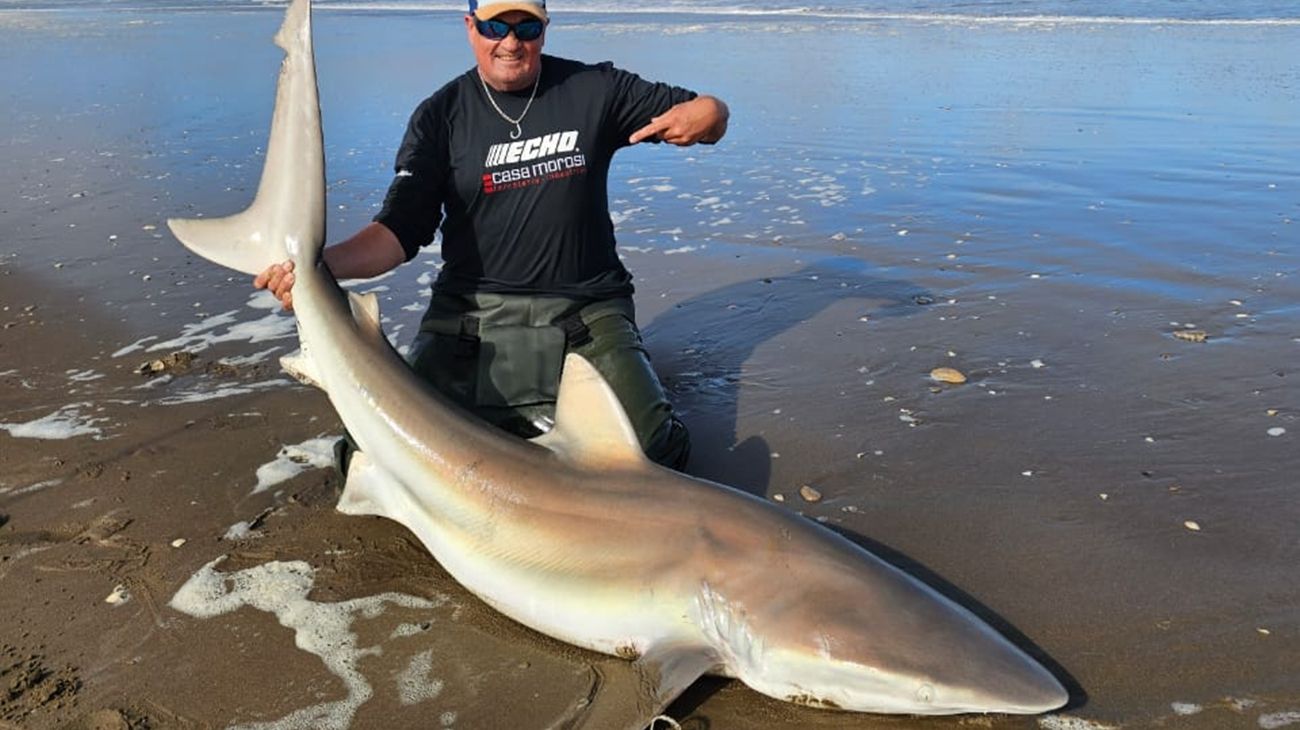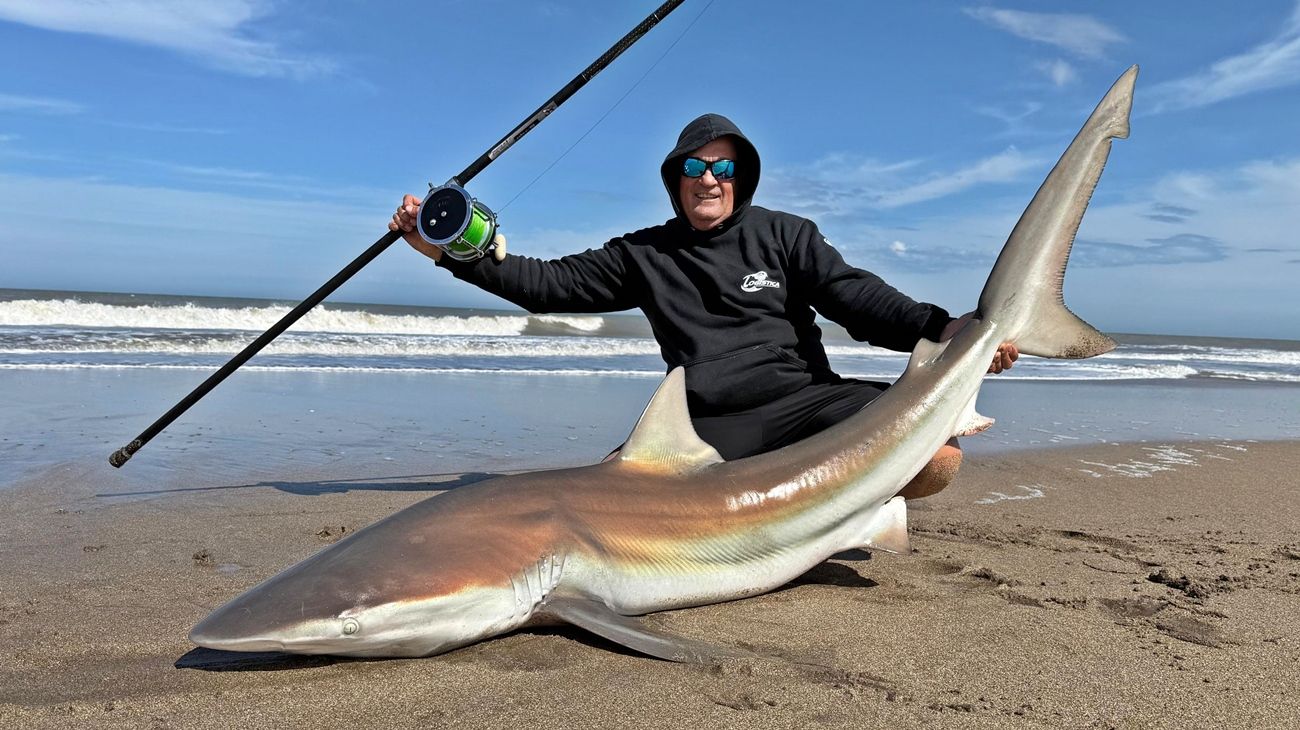 Uno de los referentes de esta pesca es Darío Vega, quien suele hacer varias incursiones en el año con amigos o familia en búsqueda de los grandes. En este inicio de temporada, el Atlántico los recibió con la carta más deseada: cazones y bacotas de muy buen porte, dos especies que resumen lo que es la pesca de tiburones desde la costa, pura adrenalina y respeto. Con Román y Pelu, grandes amigos de San Clemente, tuvieron el privilegio de marcar el primer bacota de la temporada, un ejemplar fuerte y sano que abrió oficialmente el calendario de captura y marcación del año.