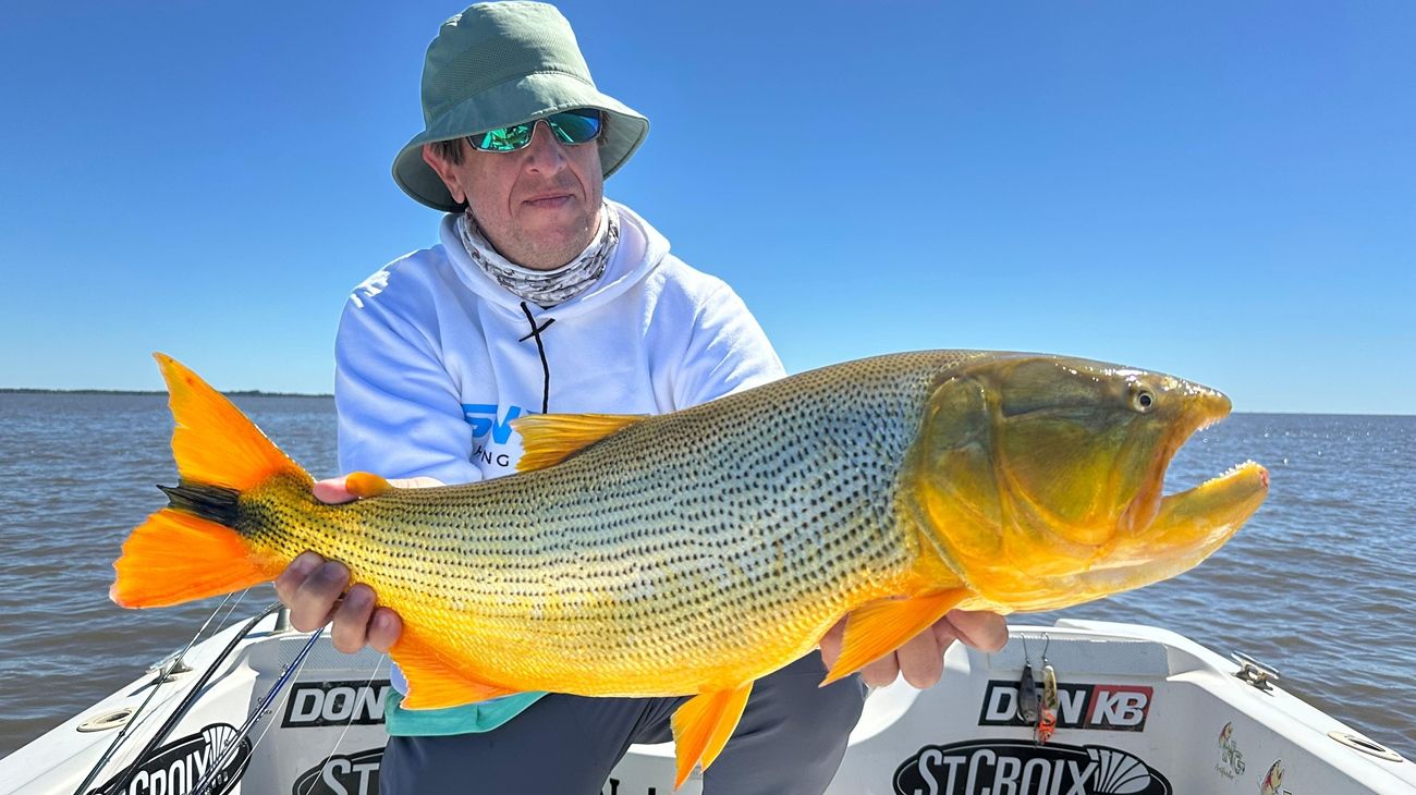 La jornada comenzó bien temprano en el camping Top Malo, en R P 46, Km 18, donde David ya nos esperaba con su embarcación totalmente equipada para esta modalidad. Tras una breve parada en el almacén y panadería del pueblo, partimos rumbo al arroyo Martínez, navegando hacia su desembocadura. A poco de iniciar la jornada, y muy cerca de pescadores comerciales, comenzaron los primeros piques. La actividad fue inmediata y sostenida, con dorados que superaban los 3 kg y algunos ejemplares que alcanzaron los 6 kg, brindando combates intensos y memorables.
