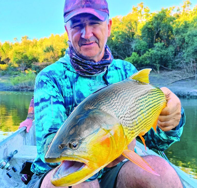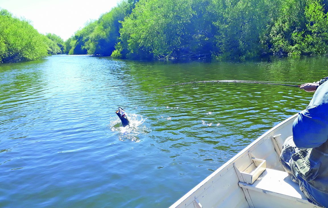En el curso alto manda el basalto superficial. La piedra forma escalones, canaletas, rápidos y pozones de aguas claras que se oxigenan solas, como si el río respirara por las grietas. Ese pulso es una pista: donde hay oxígeno y estructura, suele haber caza. En esos pasos rápidos aparece el tigre de esta historia, la tararira tornasol, con ataques que parecen exagerados hasta que nos pasan a los que lo recorremos. Y cuando el río se aplana y regala lagunones más profundos, la pesca cambia de tono: la tararira puede crecer y ponerse mañosa, y el dorado –cuando está– obliga a afinar, porque no perdona ni un anzuelo mal elegido ni una devolución a las apuradas.