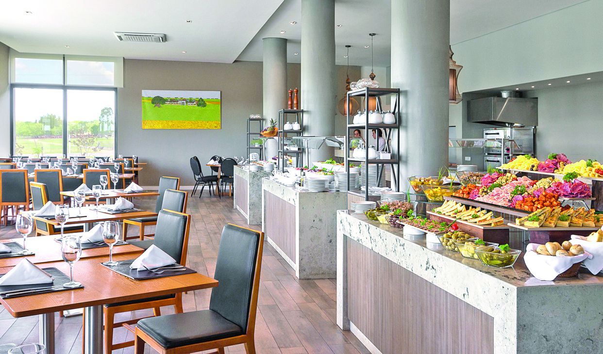 El complejo invita a elegir ritmo. Se puede usar como base para salir a pescar temprano y regresar a media tarde o directamente quedarse y disfrutar del lugar sin moverse. Cuenta con cuatro piscinas: una exterior con toboganes (ideal si se viaja en familia), otra con sector cubierto y abierto para meterse incluso cuando el clima no acompaña, y un espacio sólo para adultos en el spa, pensado para bajar un cambio de verdad. A eso se suma el área de bienestar con sala de masajes y sauna, más espacios exteriores amplios para caminar, sentarse a mirar el entorno o simplemente “no hacer nada”, que a veces es el lujo más caro.