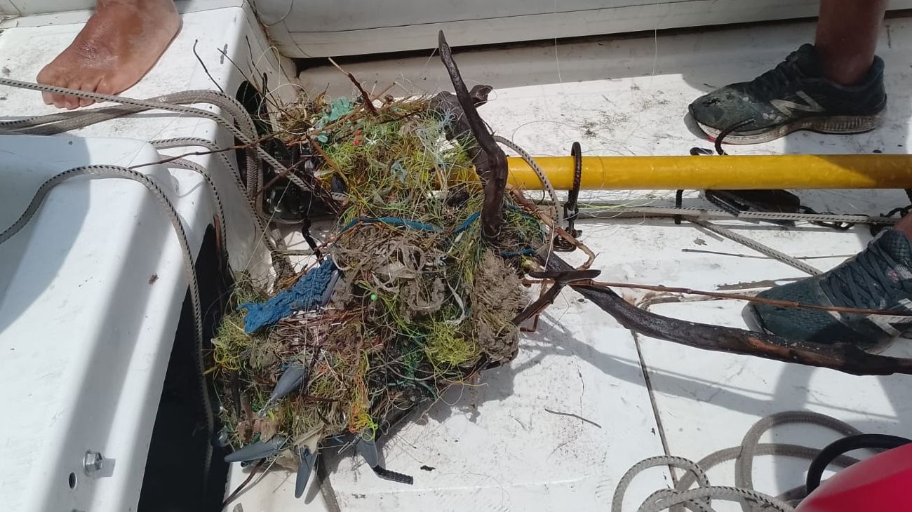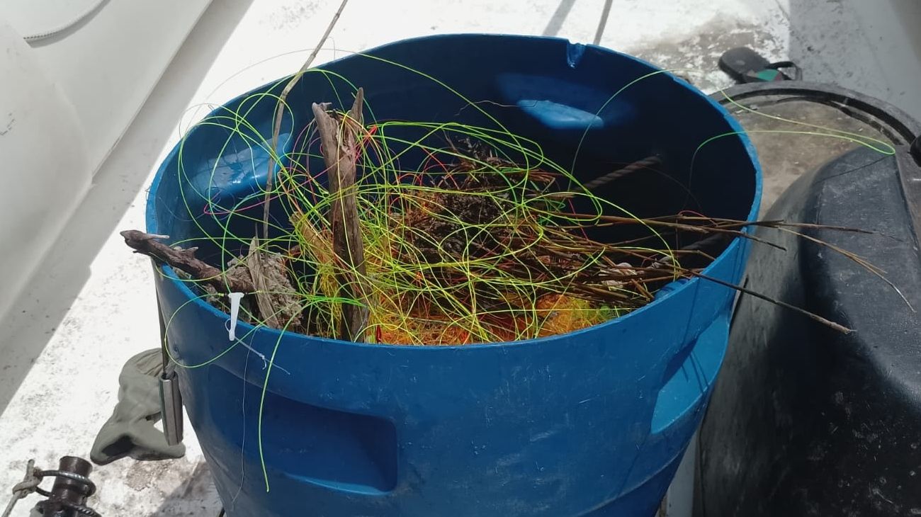 La Asociación de Fomento de Santa Teresita decidió encarar lo que muchos pescadores reclamaban desde hace años: levantar la mayor cantidad posible de restos de equipos que afectan la pesca alrededor del muelle. La iniciativa llega justo antes de la temporada de verano —cuando la afluencia de pescadores explota—, pero sus responsables aseguran que debería mantenerse todo el año. El encargado de llevar adelante la tarea es el conocido guía local Christian Maurs, referente absoluto en la zona. Según relató, el procedimiento es tan simple como exigente. Se utilizan fierros con grampines para enganchar y cortar el nylon sumergido, con enormes madejas que, cada tanto, obligan a detener la embarcación. Con la potencia del motor, se debe arrancar el amasijo del fondo, una maniobra pesada por la cantidad de plomos acumulados. El rastrillaje se realiza en largas jornadas de 7 u 8 horas, bordeando todo el perímetro del muelle. “Es impresionante lo que se junta abajo”, reconoció Maurs. “Años y años de material que nadie había levantado”.