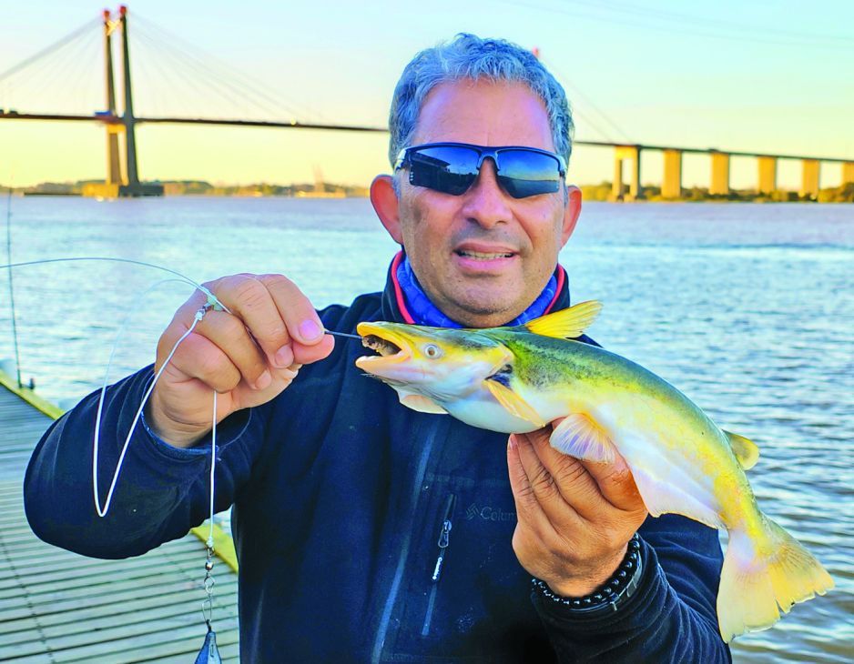 Ya con una decenita de piezas de muy buenos portes, bajamos hasta una zona cercana al río Uruguay donde se repitió la rutina de sacar algunos ejemplares grandes, pero en piques más bien aislados. Y por último, salimos al Uruguay, y allí sí, aguas debajo de Nueva Palmira, tuvimos una racha de piques constantes, pero de pescados más entremezclados en tamaño. Es que el Uruguay anticipó lo que este mes se espera en el Guazú: allí los mayores ya pasaron hace rato y ahora están instalados los grandes cardúmenes, algo que seguramente se dará este mes en el Bravo y el Guazú. Misión cumplida: dimos con los grandes, mostrando que la aspiración a pejes de calidad podía ser satisfecha. Ahora nos quedaba comprobar cómo se daba la pesca de muelles.