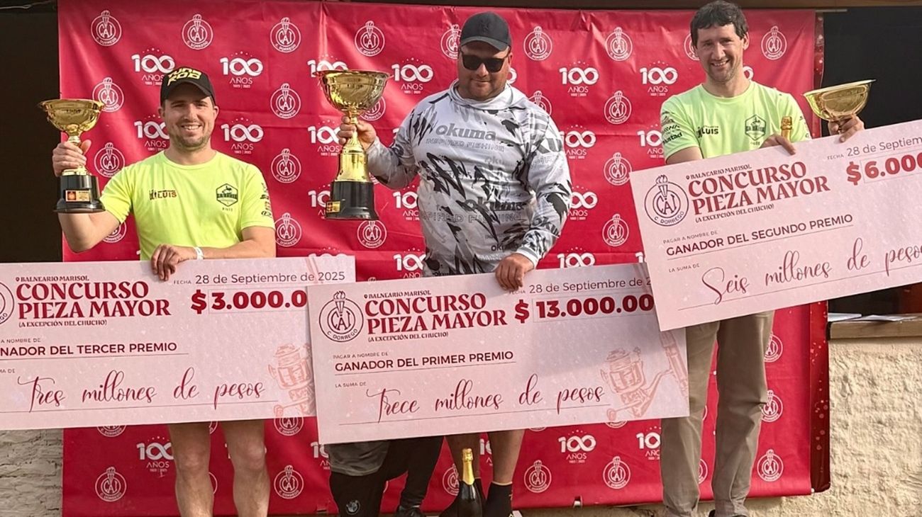 Elian Barth, el gran ganador del concurso, no ocultó su alegría en una jornada inolvidable en la que se adueñó del premio mayor tras capturar un pez guitarra de 6,210 kg. “La pasamos muy bien, no nos esperábamos esto. Fue un gran día”, contó tras levantar la pieza que lo consagró. Con langostino y anchoa como carnada, junto al consejo de un amigo para quedarse en el lugar elegido, consiguió el resultado soñado en su primera experiencia consagratoria después de una década participando en concursos. Completaron el podio dos asiduos animadores de los torneos, Guillermo Ferraro y Juan Patricio Clegue, ambos de Pigüé y que lograron los mejores peces gallos del domingo, piezas de 3,120 y 3,050 kg, respectivamente.