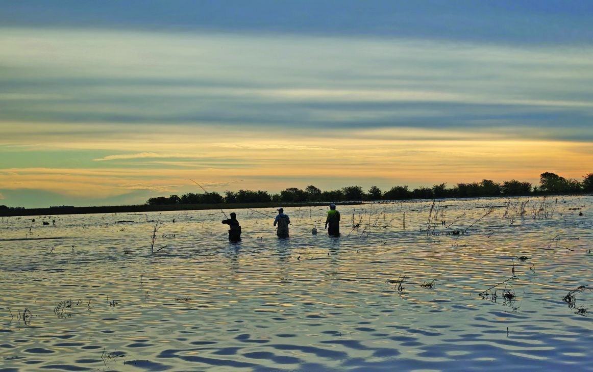 Las lisas llegan desde el mar y remontan los ríos del Plata hacia las lagunas y arroyos interiores. Su capacidad eurihalina les permite adaptarse a diferentes grados de salinidad, instalándose en espejos de agua dulce donde el calor despierta su voracidad. Por eso, cuando el sol empieza a templar la superficie y el verano se asoma, los mejores días están por venir. Así lo anunció Esteban Tofanni, guía y lisero de pura cepa, que nos dio el aviso: “Están activas en el Camarón”. No hizo falta más. Con Gastón Cimmino, Alberto Frontoni y Gabriel Claro preparamos el equipo y partimos hacia la Laguna La Boca, en Pila.
