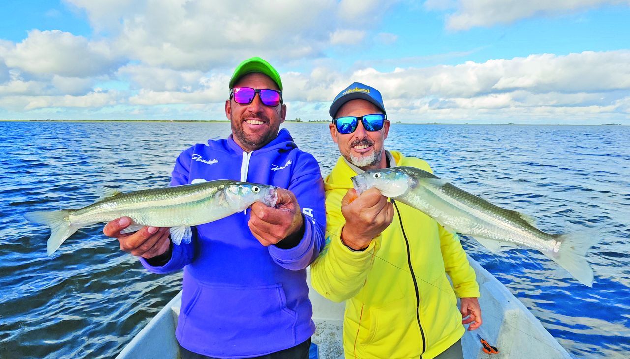 A las 14 salió el sol y los piques se intensificaron. Logramos capturas sorprendentes de hasta 1 kg. Estábamos en el lugar justo, gracias a la experiencia de Esteban, que no se guarda nada para que el pescador se lleve lo mejor. En la última parada, entre las 16 y 17, nos arrimamos a la zona del tambo, a 300 m de la costa, donde logramos dobletes de gran calidad. El dato final: la mejor carnada fue la mojarra viva teñida de verde.