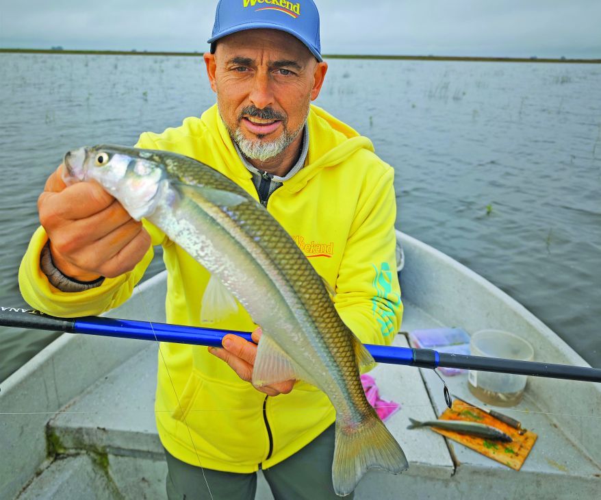 Esteban, por su parte, con boyas combinadas amarillo y negro, clavó un hermoso ejemplar de 40 cm en una abertura entre plantas. Mientras la mañana avanzaba, él se movía cada 20 minutos con el motor, buscando claros para completar la cuota.