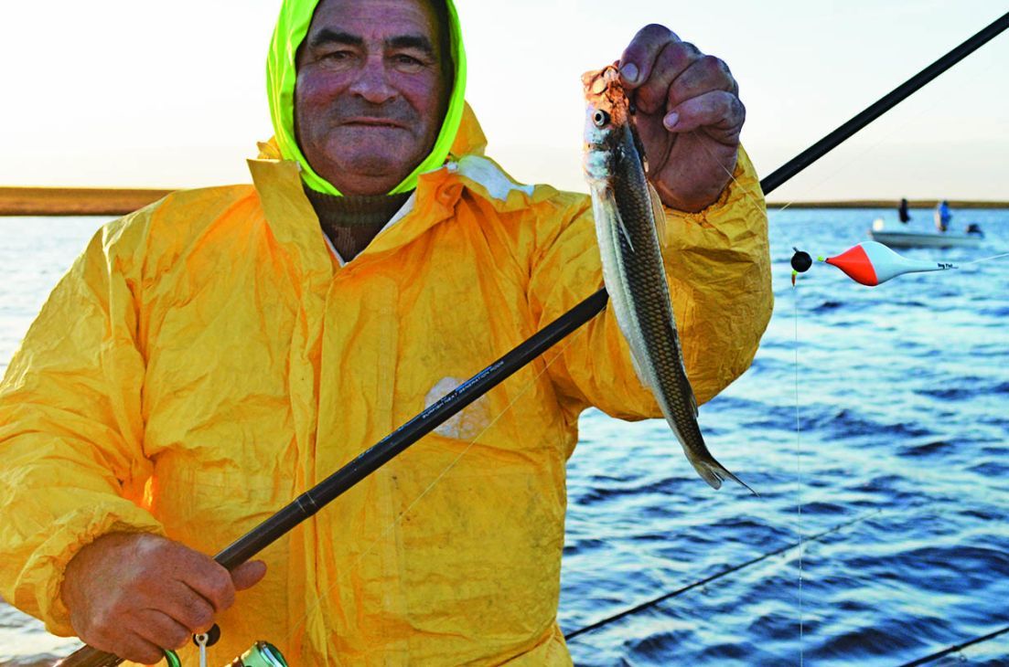 Durante la navegación a baja velocidad, ya se podía ver la gran población de pejerreyes nadando bajo el agua, augurio de una jornada prometedora. Armamos los equipos con líneas de flote compuestas por tres boyas, sin puntero, dejando que gareteen libremente con el pickup abierto. Los piques no se hicieron esperar. Los primeros ejemplares, entre 25 y 30 cm, aparecieron en las horas iniciales, activos y voraces. Para seleccionar tamaño usamos encarnes voluminosos, logrando devolver aquellos que estaban fuera de medida y no tragados. La población de ejemplares era realmente abundante.