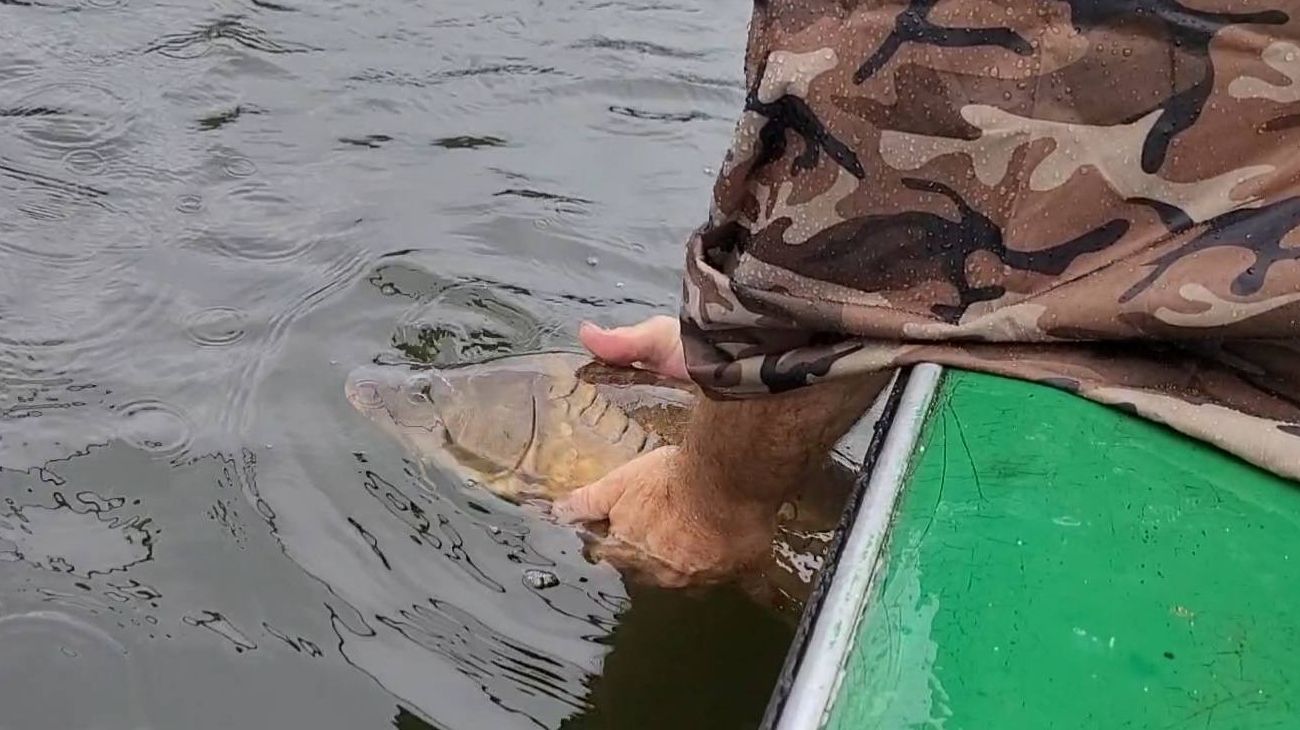 La mañana se presentó lluviosa y algo complicada, pero con el correr de las horas el clima mejoró y terminó regalándonos un día muy agradable. Al llegar al lugar, anclamos directamente sobre el cauce del río, en una profundidad que no superaba los 5 m, y comenzamos con el cebado del sector utilizando maíz remojado, una estrategia clave para activar a las carpas. Permanecimos allí hasta pasado el mediodía, logrando una sola captura, pero de alto nivel: una carpa espejo de gran porte, que nos brindó una batalla intensa y dejó en claro el potencial del lugar.