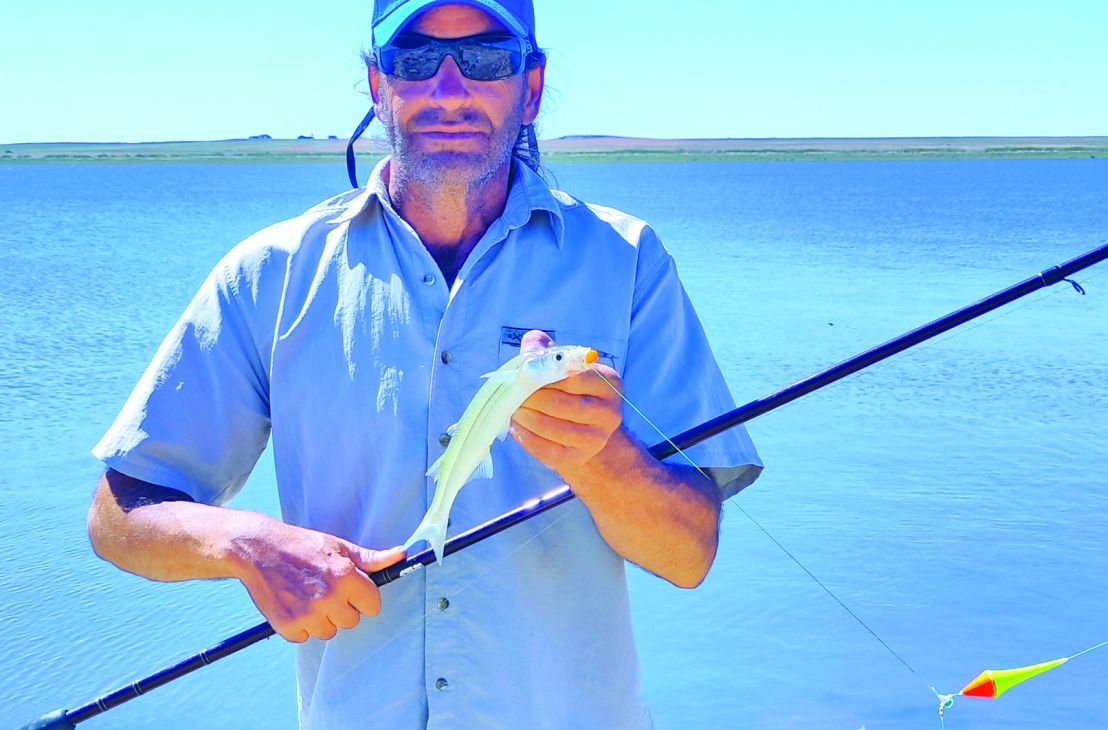 La carnada que más rinde es la mojarra viva grande, además del filet de dientudo de la misma laguna. Para encarar bien el ámbito, conviene usar cañas de más de 4 m y líneas largas, bien separadas: 3 boyas, con una longitud total de alrededor de 3 m. Las brazoladas trabajan entre 20 y 50 cm. En el centro de la laguna también funciona el paternoster a unos 3 m de profundidad. Usar anzuelos del 1 al 1/0, porque el pejerrey acá no es de boca tímida. El predio tiene una muy buena bajada de lanchas y permite deportes náuticos como kayak y remo. Además, hay cabañas equipadas para alquilar. Guía autorizado: Lisandro Kappes, Tel.: (0291) 15 5082004.
