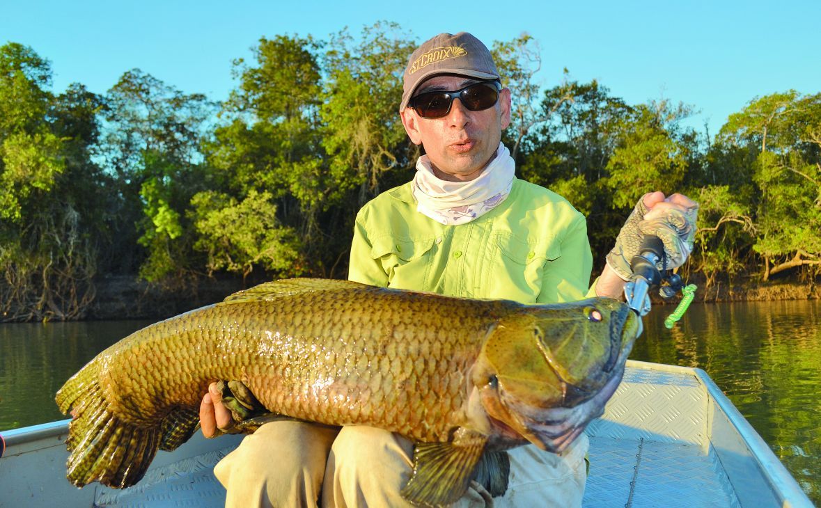 Pescando en el río Irirí (Mato Grosso) recuerdo cómo, al cabecear fuera del agua, ejemplares de 8 a 10 kilos se liberaban de mis señuelos crankbaits con dos triples. A mi caña le faltaba potencia y no tenía otra a mano. Por tanto, opté por unas cucharas ondulantes Novy con un solo anzuelo: no se escapó ninguna más. Para bait y spinning también se usa cable de acero de 10 cm de largo y 20 libras, con un mosquetón cerrado, para enhebrar el pitón, o de apertura y cierre, pero bien seguro, esos que exigen una yema del dedo fuerte.