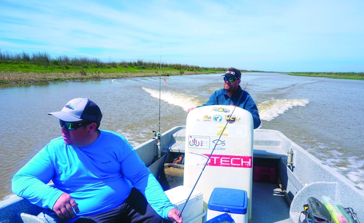 A lo lejos veíamos la esbelta figura del guía que venía a buscarnos para cambiar y probar otros pesqueros. Volvimos al trucker y, navegando de regreso, entramos en algún que otro zanjón para seguir con la pesca. Allí, cámara en mano, sòlo traté de tomar imágenes de Mariano y Esteban, que estaban meta clavar ante cada uno de los piques de taruchas que se iban sucediendo. Obvio que algunas erradas también hubo, y ante cada una de esas fallidas vienen las bromas de rigor.