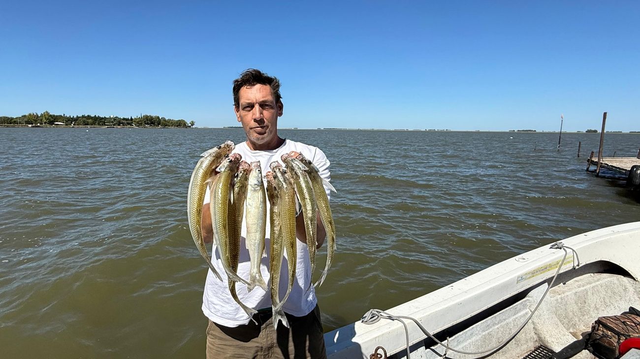 Con el correr de las horas, el viento fue calmando hasta dejar el espejo prácticamente planchado. En ese contexto, y con varias capturas ya concretadas, se decidió explorar el sector central de la laguna, donde se registran mayores profundidades. Allí, el cambio a equipos tipo paternóster de tres anzuelos resultó clave para seguir sumando piezas. Un dato importante: los pejerreyes son de boca chica, por lo que el uso de anzuelos número 2 o 3 fue determinante para no perder piques. El rendimiento se mantuvo firme durante toda la jornada, permitiendo alcanzar la cuota sin inconvenientes. Los ejemplares presentaron portes entre 25 y 30 cm, con muchas piezas menores que fueron devueltas.