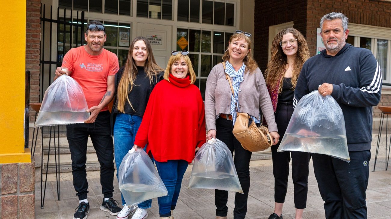 En los últimos días, desde el Municipio se entregaron 5 bolsas con alrededor de 20 mil ejemplares jóvenes cada una, provenientes de la Estación Hidrobiológica de Chascomús. En esta ocasión la Directora de Turismo Karen Flensborg y la Secretaria de Gobierno y Hacienda, Melisa Eriksen realizaron una primera entrega destinada a distintas lagunas del partido. Entre ellas, El Albardón, Jorgensen, La Genovesa, La Vizcacha y Epull. La buena noticia es que ya se prepara una segunda entrega que abarcará a más espejos. Desde la Municipalidad invitan a que los propietarios de lagunas interesados en recibir alevinos se anoten enviando un mensaje a: [email protected] o al Tel.: (02983) 50-1707.