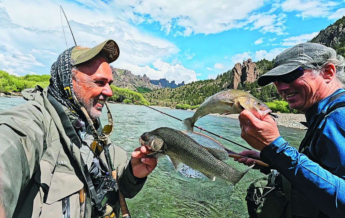 Los equipos empleados fueron de potencia #4 y #6 con líneas sinking tip y líderes del orden de los 6 pies terminados en tippet 1X y 2X; y las moscas: estrímeres montados en anzuelos Nº 6 a 10 cómo Matuka, Zonker y Woolly Buggers y sus variantes. Entre las que funcionaron bien: una Egg Sucking Leech con el chenil naranja –del supuesto huevito– atrás, sobre la curva del anzuelo y la Egg Sucking Leech tradicional, a pesar de que nos encontramos fuera de la época de fresa. Esto puede deberse a dos factores. Uno, que el reflejo condicionado de los peces haga que ataquen independientemente de la época; y dos, que el color rojizo a la altura de la cabeza de la mosca imita también la tonalidad de las branquias de los pececillos forrajeros en rápida huida, con los opérculos abriendo y cerrando a pleno, y exhibiendo esa coloración encarnada. Un bead head esmaltado u ojitos rojos en un estrímer cualquiera, también pueden lograr ese efecto. O, como acostumbra hacer mi amigo Horacio Machín, una terminación con hilo rojo en la cabeza. Todas formas de agregarle un efecto atractivo, un diferencial que entendemos que funciona.