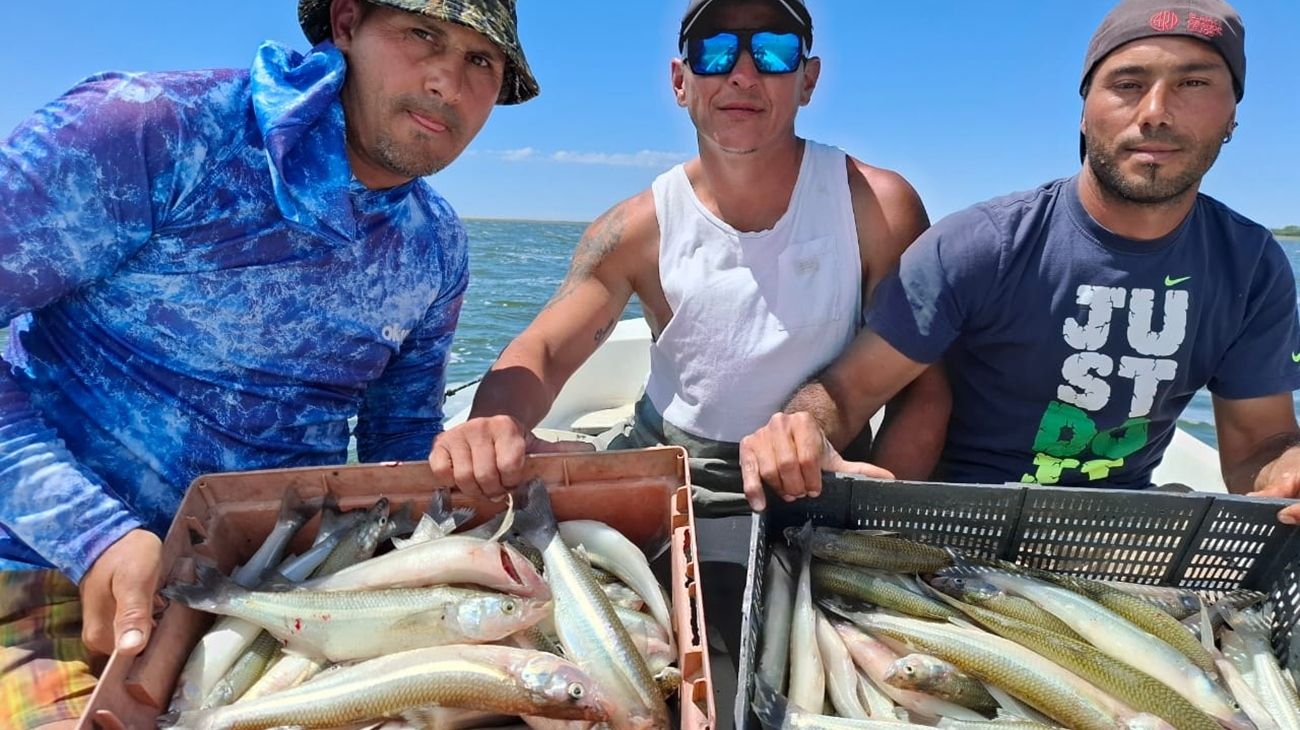 La modalidad predominante es a flote, con el pejerrey comiendo muy arriba, en profundidades que van de 20 a 50 centímetros. Se rinde tanto al garete como anclado, dependiendo de las condiciones de viento. Los tamaños promedian los 35 centímetros, con ejemplares bien formados. La mojarra viva es la carnada estrella, aunque también puede sumar efectividad algún filet de dientudo para alternar.