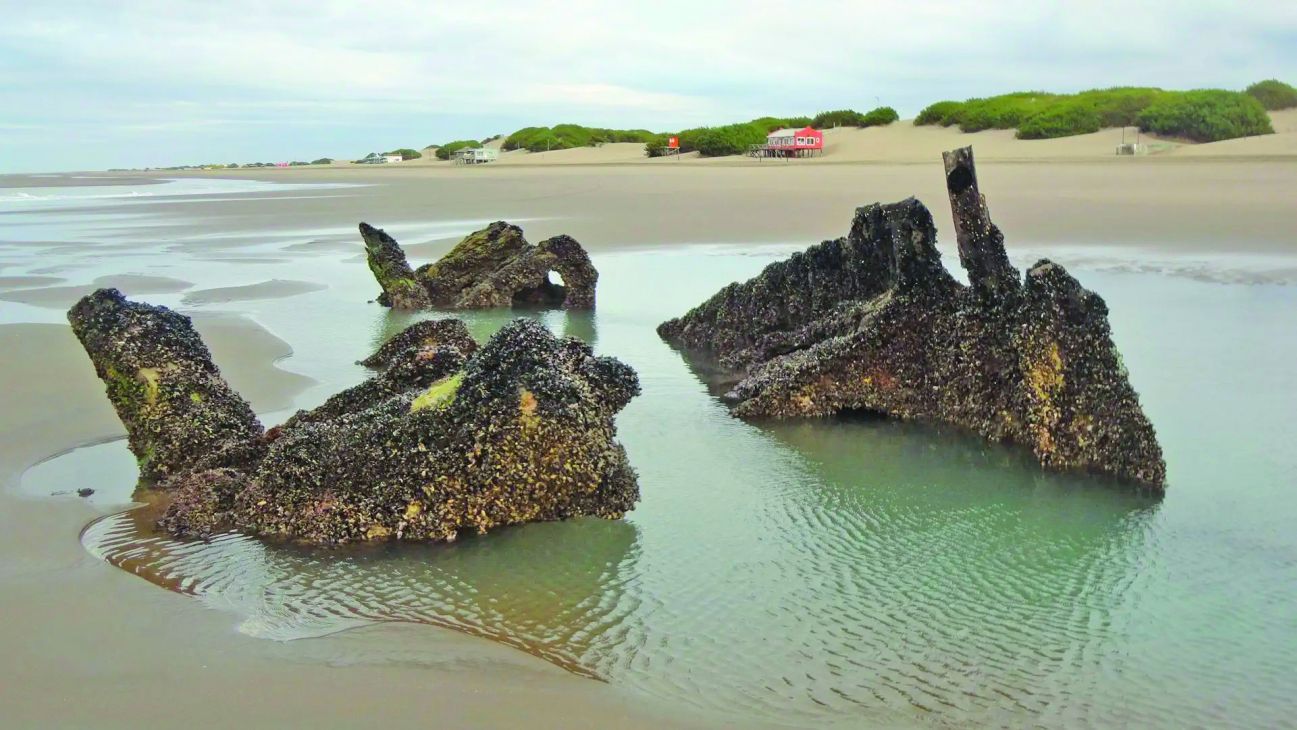 Reta (Tres Arroyos). Este balneario es prestigioso por sus playas extensas y sus cálidas aguas, junto a una pequeña villa turística perteneciente al partido de Tres rroyos. Debe su nombre a Martín Reta que lo fundó hace unas nueve décadas atrás. Su costa es agreste y cubierta de médanos, y por su situación geográfica, es posible disfrutar tanto el amanecer como el atardecer en el mar. El agua es notablemente más cálida que en otros puntos de la costa argentina, debido a una corriente proveniente de Brasil que pasa en las cercanías. Entre sus atracciones, vale la pena visitar el Túnel Submedanal (único en el país) que permite el paso a la playa por debajo de las dunas; y bien cerca, el insólito barco hundido que permanece encallado desde 1930 (muy deteriorado por los efectos del mar, y lo curioso es que nunca se obtuvieron datos del naufragio, foto abajo). Otro sitio a tener en cuenta es la laguna de Ambrosius (lleva el apellido de los propietarios de los terrenos) que es un humedal formado en la desembocadura del arroyo El Gaucho, situado detrás de los médanos y poblado de un gran número de aves. La pequeña villa turística de Reta presenta una abundante forestación, donde predominan los eucaliptus que brindan un aroma muy particular.