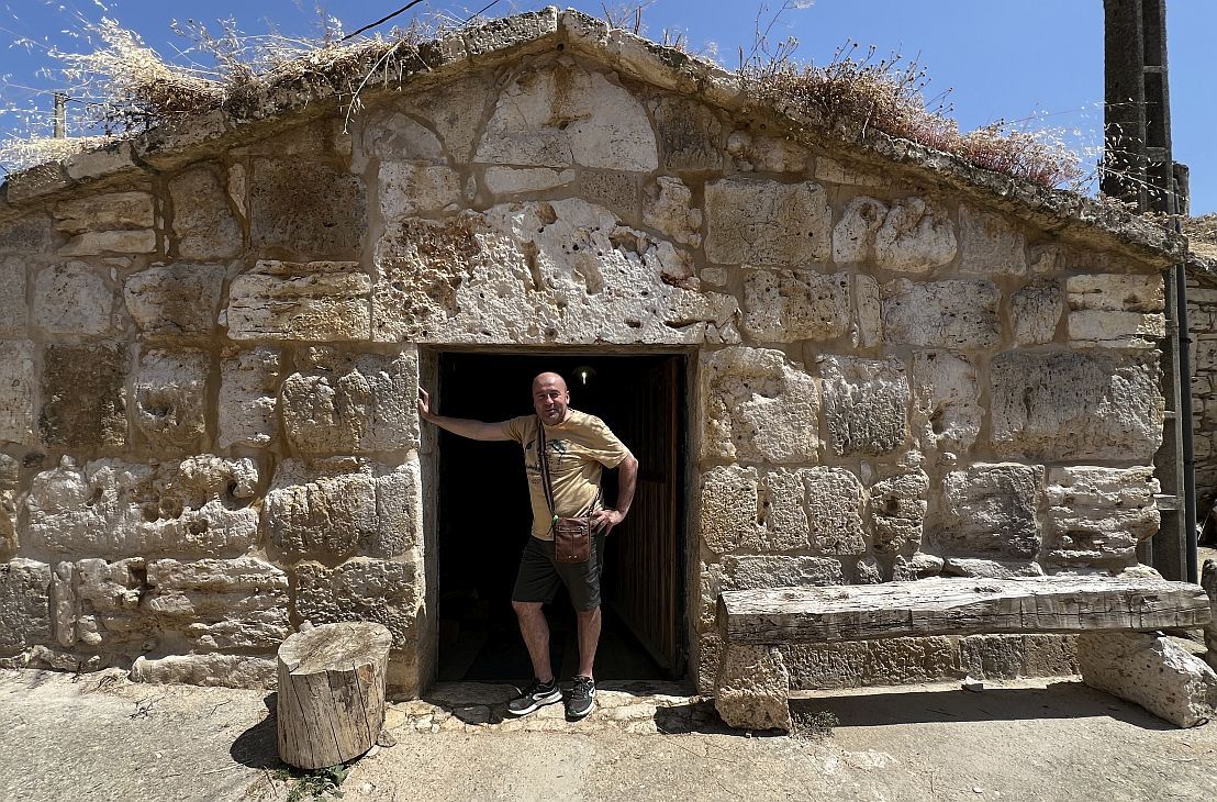 Pero son esas casas cueva lo que más llama la atención: en Dueñas, Valentín Rincón Blas (foto apertura) es el encargado de mostrar la vivienda familiar denominada Valentín, que ahora sólo se usa para las reuniones del domingo, compuesta por habitaciones contiguas excavadas en el suelo y encaladas, que fueron creciendo junto con las necesidades familiares. Son espacios frescos y aireados por tener chimeneas, que son lo único que se ve en el trazado de esas lomas tapadas de pasto. Allí vivían los jornaleros del campo, que no tenían medios económicos para otro tipo de hogares. La construcción se inicia realizando un corte vertical en la ladera y comienza la excavación horizontal, dando lugar a la cueva en sí. Las condiciones de habitabilidad son buenas ya que, dependiendo de las estancias y la época, las temperaturas oscilan entre 13 y 18 ºC, o sea que se necesita poca energía para calentar habitáculos que suelen ser pequeños (menos de 10 m2). Además en verano son fresquitas. Los Rincón Moreno fueron los últimos moradores de esta casa cueva, donde residieron desde 1930 hasta principios de los ‘50