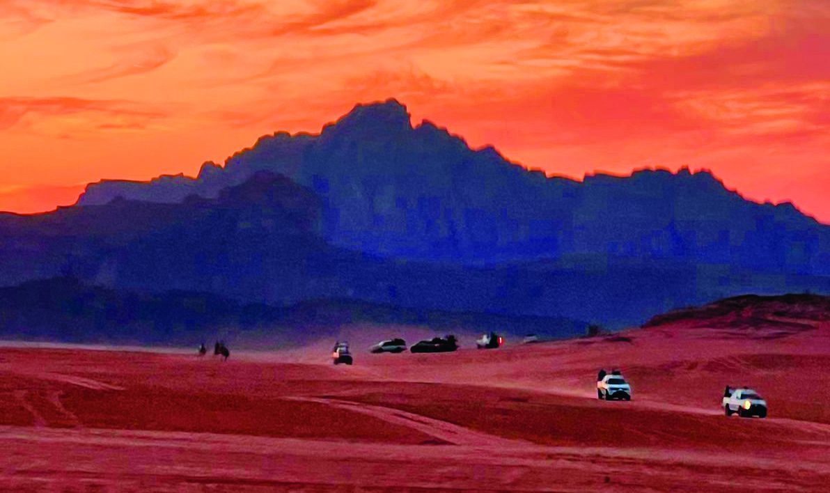 Retomamos viaje hasta acercamos al pueblo de Petra: a la derecha de la ruta, recortado a negro con un fondo de rojo atardecer, el perfil de una manada salvaje de dromedarios de una sola joroba caminando lentos y sin rumbo, como esperando nada.
