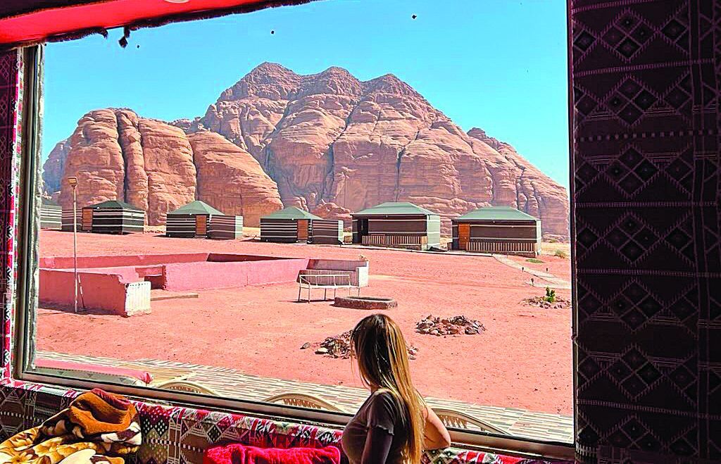 Wadi Rum es uno de los desiertos más hermosos del planeta, una meca de los paseos en 4x4, los vuelos en globo y el trekking. La manera de visitarlo es durmiendo en camping y hay un centenar. Llegamos a las puertas de Wadi Rum y estacionamos: sólo se puede entrar en camioneta 4x4. Nos espera una del Beduin Star Trail Camp para llevarnos a sus tiendas al pie de un montaña, donde las hay privadas –con baño propio– y compartidas. Jihad nos conduce con pericia por la planicie arenosa y cuenta que pertenece a una familia beduina: sus propios padres han nacido en este desierto donde vivieron en tiendas. Su abuelo tuvo cuatro esposas y 25 hijos. La vida de todos ellos cambió cuando la película Lawrence de Arabia se filmó aquí en 1961 y comenzó el turismo.