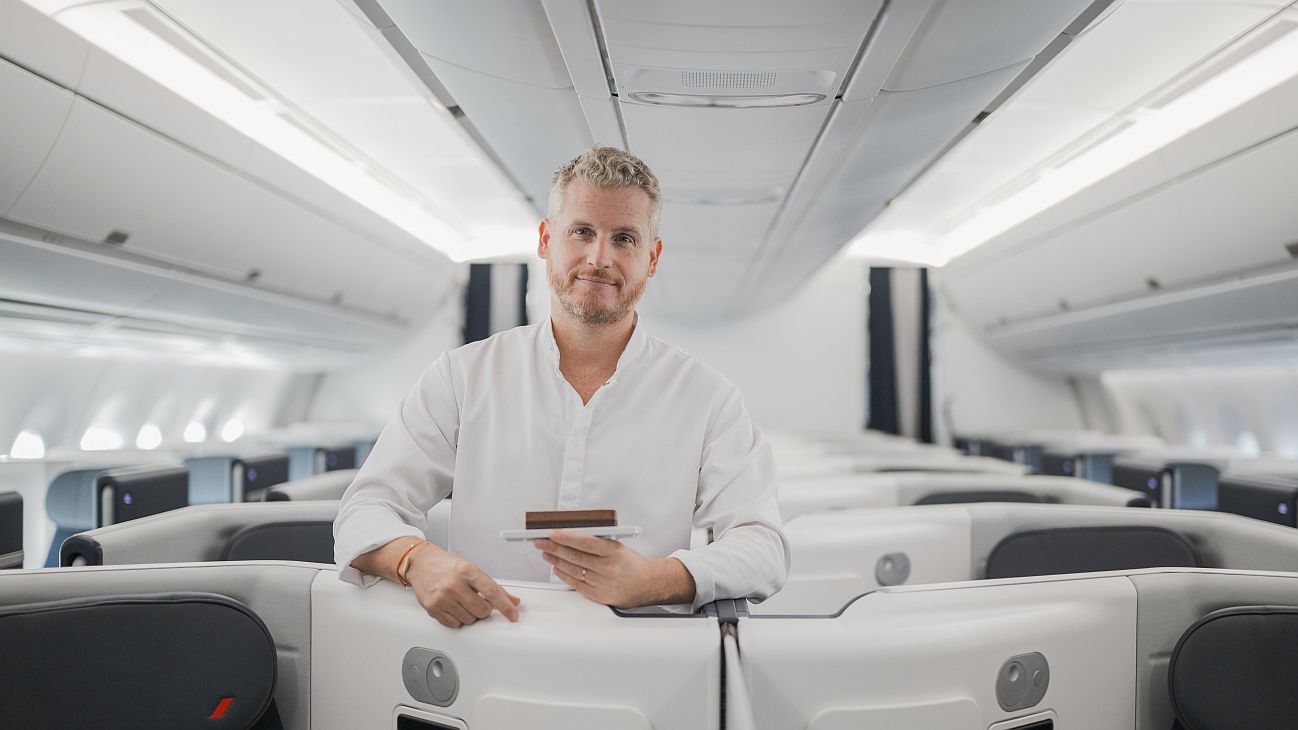 Presenta nuevos postres creados por Yann Couvreur (foto abajo) para su cabina Business de vuelos de larga distancia. El reconocido pastelero francés desarrolló creaciones exclusivas que combinan sabores auténticos, ingredientes de temporada y el arte de la pastelería francesa a bordo. Entre ellasse incluyen postres de galleta crujiente, ganache y mousse de chocolate negro intenso, así como galleta crujiente, mousse de almendras y una confitura de pera, demostrando su compromiso con el uso de productos simples y de estación. Inspirado en la esencia misma de la pastelería francesa - sabores auténticos e ingredientes de calidad -, para “dar a conocer los productos franceses en todo el mundo e invitar a los pasajeros de Air France a disfrutar de sus creaciones originales y gourmet”, según Couvreur.