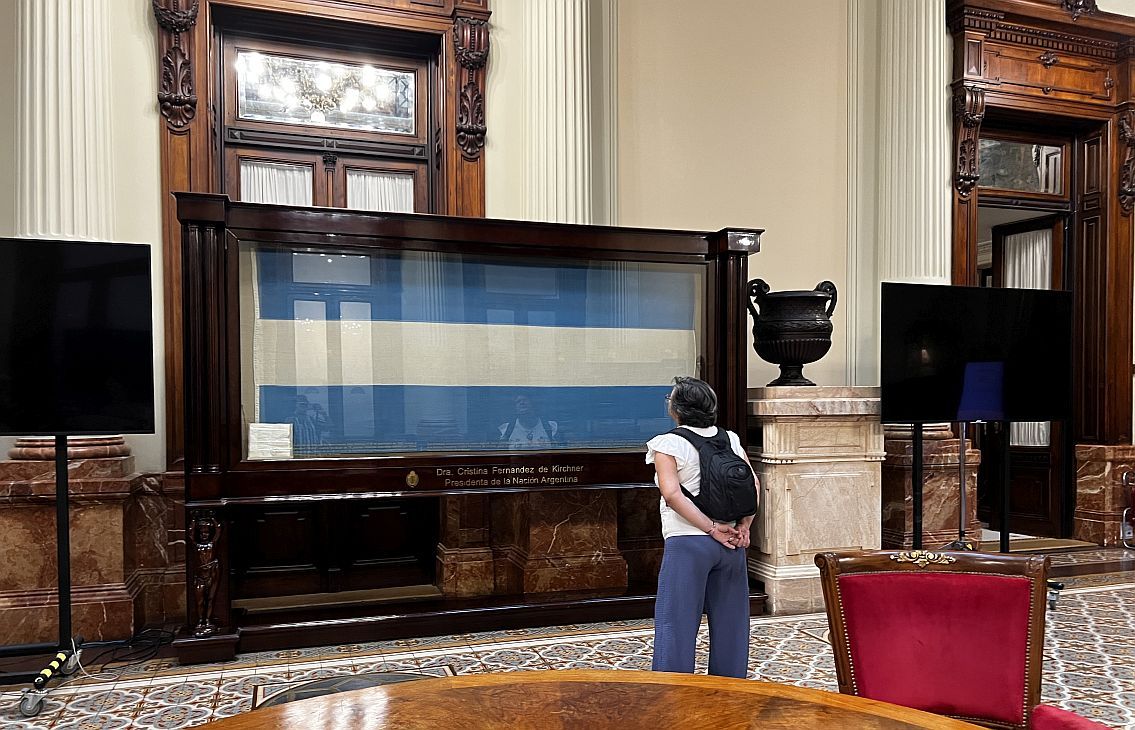 Antes de concluir, el tour se detiene frente a una bandera argentina muy particular: una de las siete que flamearon en las Islas Malvinas durante la Operación Cóndor de 1966. Llama la atención que no tiene el sol central. La explicación es protocolar y profunda: “Si llevamos el sol, estamos declarando la guerra. Sin el sol, expresamos que hay un conflicto pero que queremos resolverlo de manera pacífica”. La visita termina con una invitación a la participación ciudadana. Más allá de la arquitectura "parisina" y los lujos europeos, el Congreso busca abrirse a la comunidad no sólo con tours, sino con conciertos gratuitos de su propia orquesta los últimos lunes de cada mes. Porque, como bien señala la guía antes de despedirse: “Modificar la realidad es una responsabilidad de todos nosotros a través de la iniciativa popular”.
