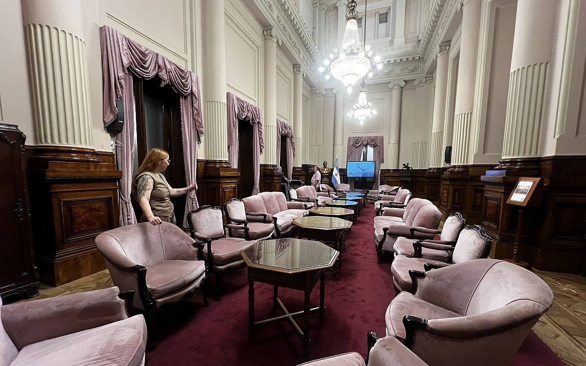 Uno de los puntos más emblemáticos de la visita es el Salón de los Pasos Perdidos, famoso por ser el epicentro de la prensa durante las sesiones y el lugar donde se velan a las personalidades ilustres. Entre los banners de los canales de noticias y la "rosca" política, cuelgan dos cuadros monumentales de Antonio Alice y Juan Manuel Blanes que narran la génesis argentina. Curiosamente, el cuadro de Blanes que retrata la apertura de sesiones de 1886 muestra al presidente Julio Argentino Roca con una venda en la cabeza. “Le pegaron con un adoquín al cruzar la calle”, relata la guía. El detalle no es menor: Blanes, fiel a su estilo de "aparecer" en sus obras -al mejor estilo Velázquez-, se autorretrató en el balcón del cuadro, sosteniendo un sombrero en la mano.