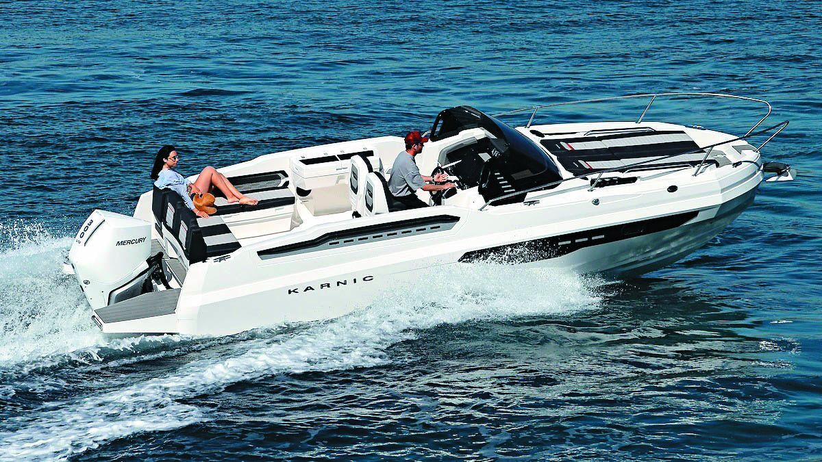 El Karnic D8S es familiar y deportivo. Con marcadas líneas agresivas y modernas, este barco de alta gama deslumbra en el momento de buscar confort, ya que cada espacio ofrece diferentes opciones para estar cómodo: navegar a velocidad, despacio o estar fondeado en un puerto.